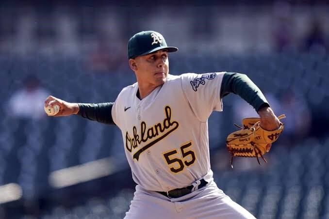 Adrían hizo 79 pitcheos, enfrentó a 21 bateadores y después fue relevado por Zach Jackson, Domingo Acevedo y Lou Trivino.