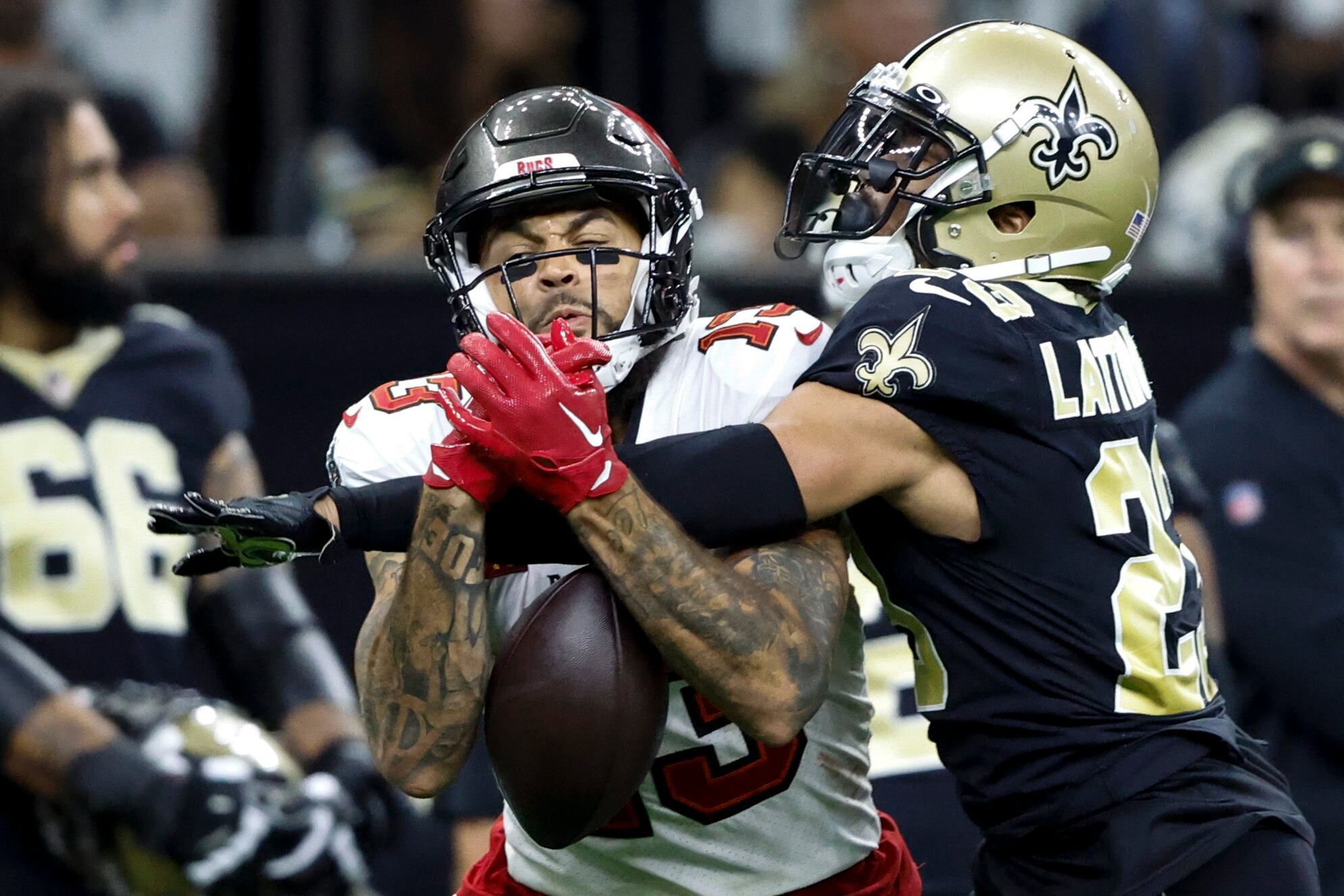 TAMPA, Florida, EE.UU. (AP) — El receptor de Tampa Bay Mike Evans fue suspendido sin paga un encuentro por su participación en una riña que resultó en su expulsión y del cornerback de Nueva Orleans Marshon Lattimore en el encuentro del domingo.