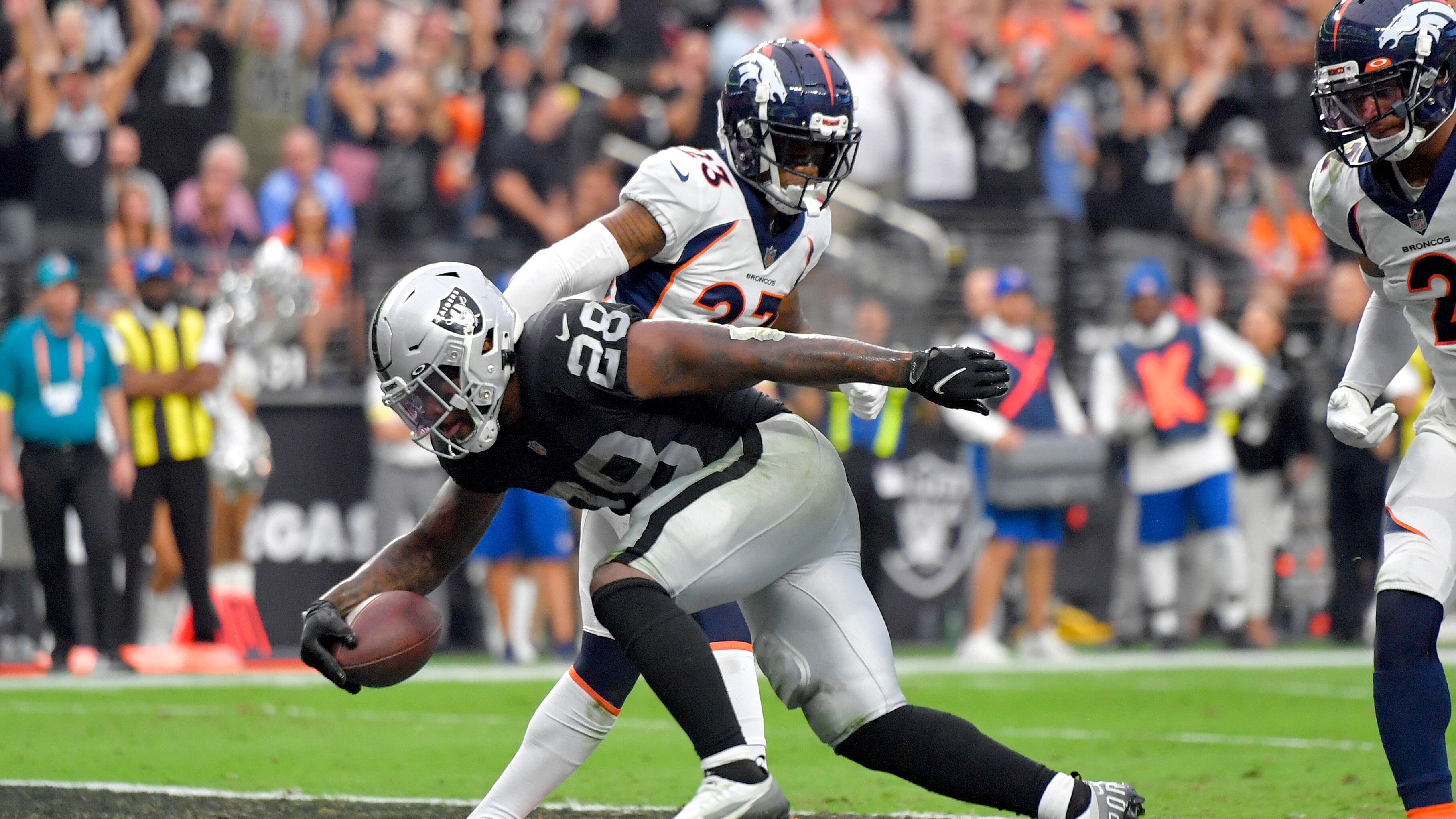 Max Crosby consiguió dos de las capturas de Las Vegas y Robertson ejecutó la jugada que cambió el juego al final de la primera mitad después de que Denver no pudo aprovechar su buena posición en el terreno de juego.