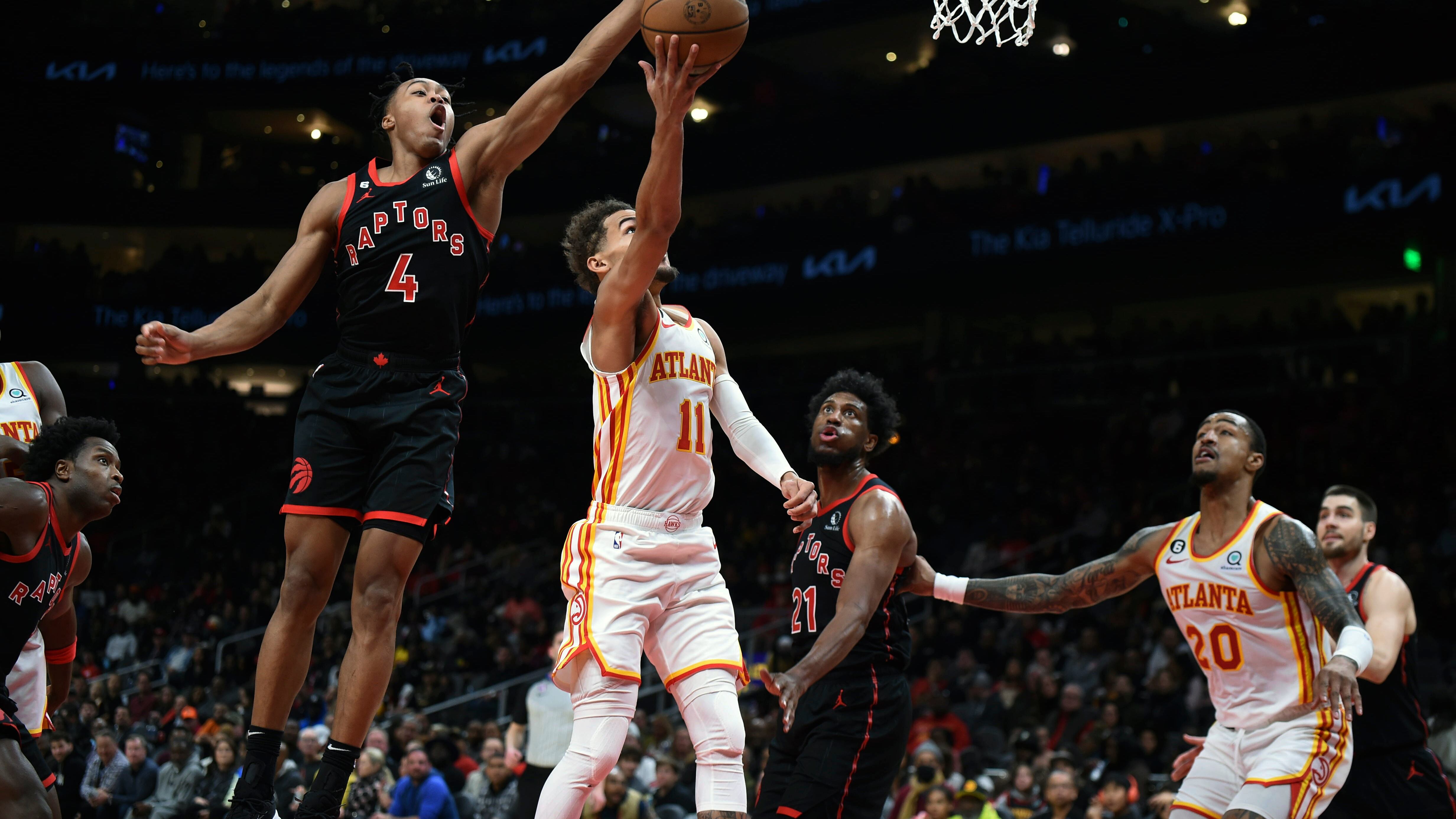 Los Raptors estaban arriba 108-101 cuando faltaban 2:36 de partido, pero con una seguidilla de 10 puntos en un lapso de 90 segundos, los Hawks se fueron arriba por 111-109 gracias a dos tiros libres de Young a menos de un minuto del final del cuarto periodo.