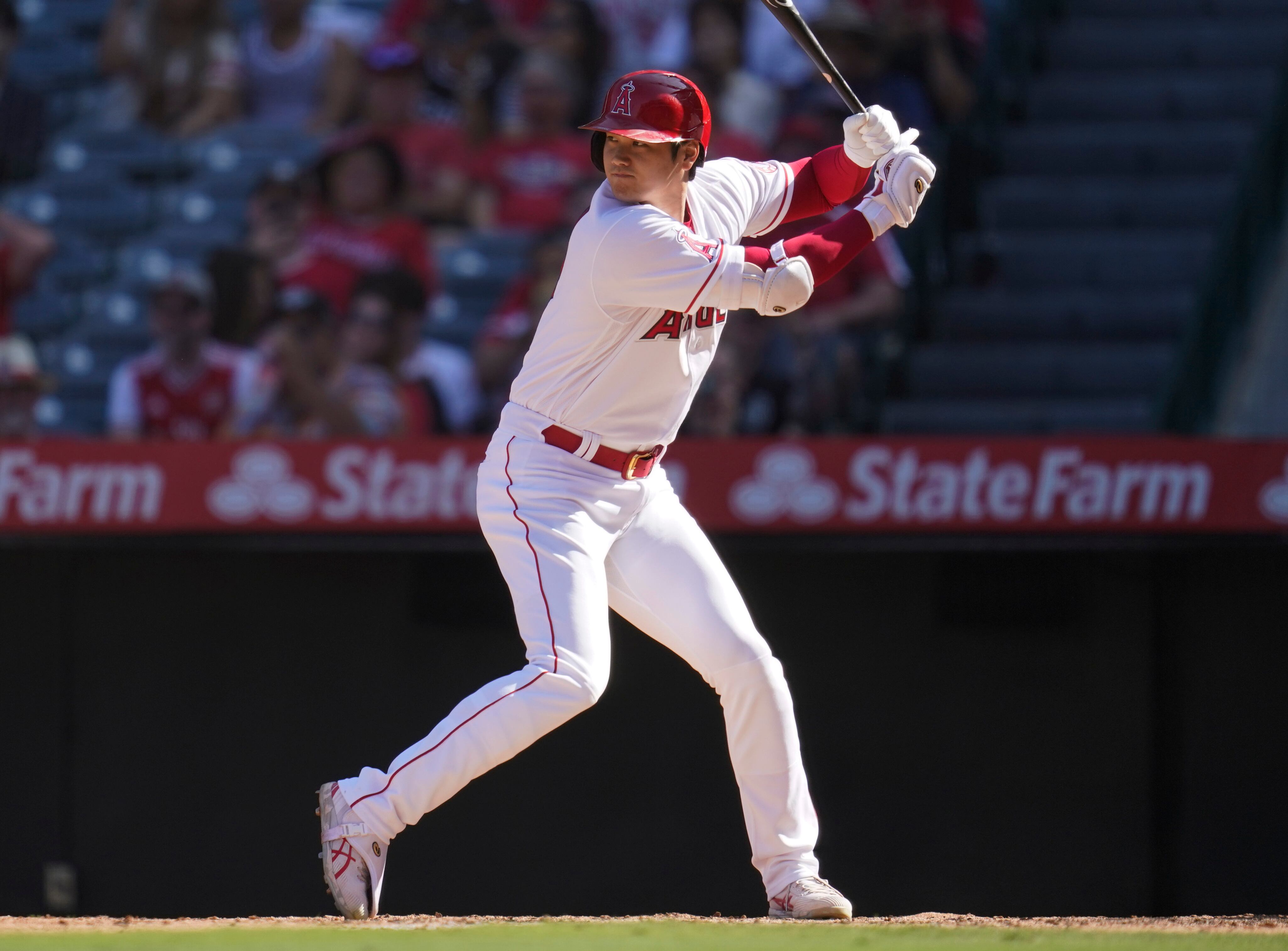Ohtani tuvo un promedio de bateo de .273, con 34 jonrones, 95 remolcadas, 11 bases robadas y .875 OPS y que lo colocó décimo en las mayores. Lideró a todos los bateadores designados que tuvieron al menos 100 turnos al bate en hits, carreras, total de bases, triples, jonrones, remolcadas y bases por bola. Con su sexto encuentro con varios jonrones empató el récord de franquicia de Troy Glaus. Ohtani tuvo además una racha de 18 duelos con hits esta campaña.