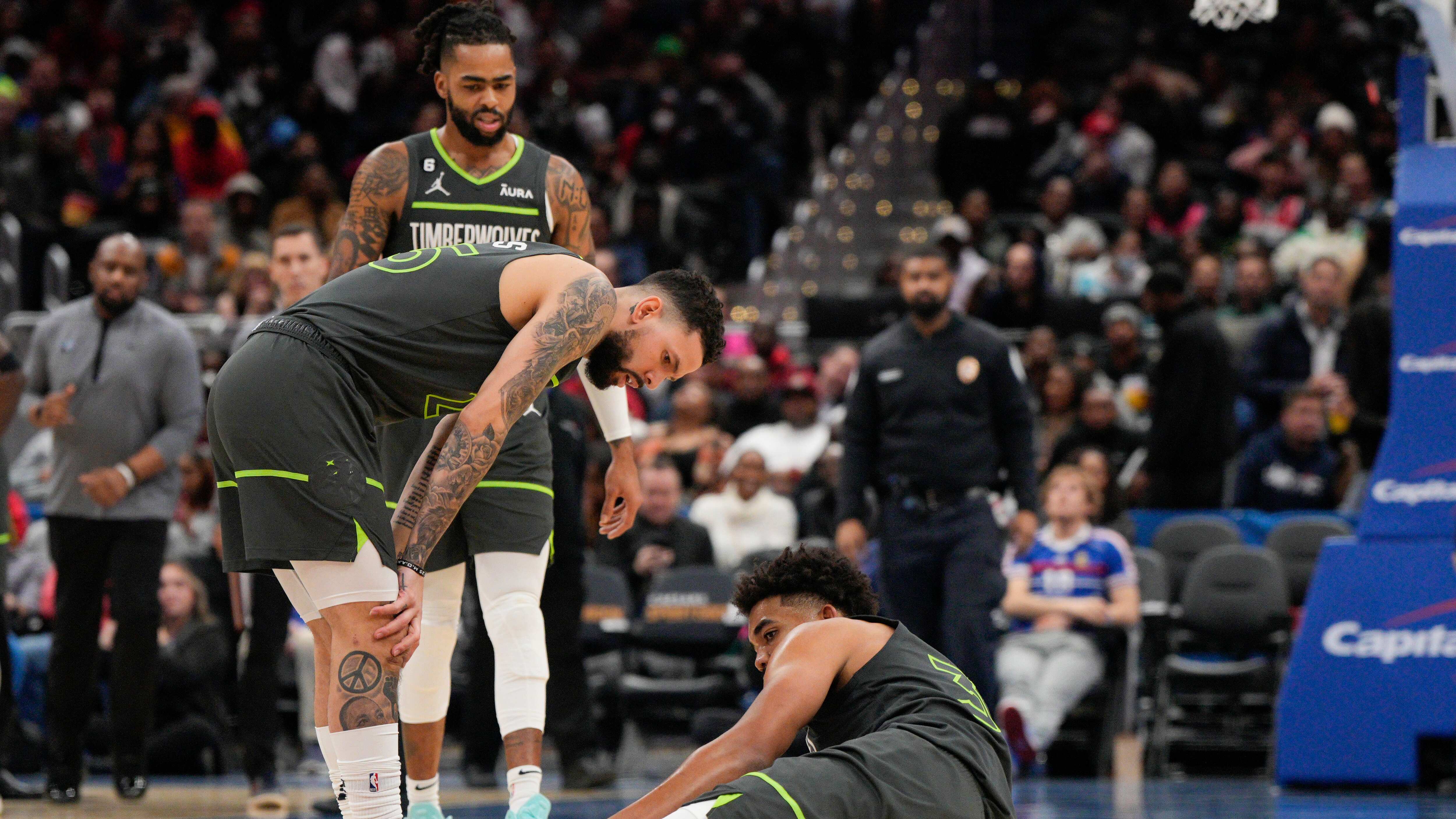 Towns se lesionó a la mitad del tercer cuarto en la derrota del lunes 142-127 ante los Wizards de Washington. Lo auxiliaron para salir de la cancha sin poder apoyarse en la pierna.