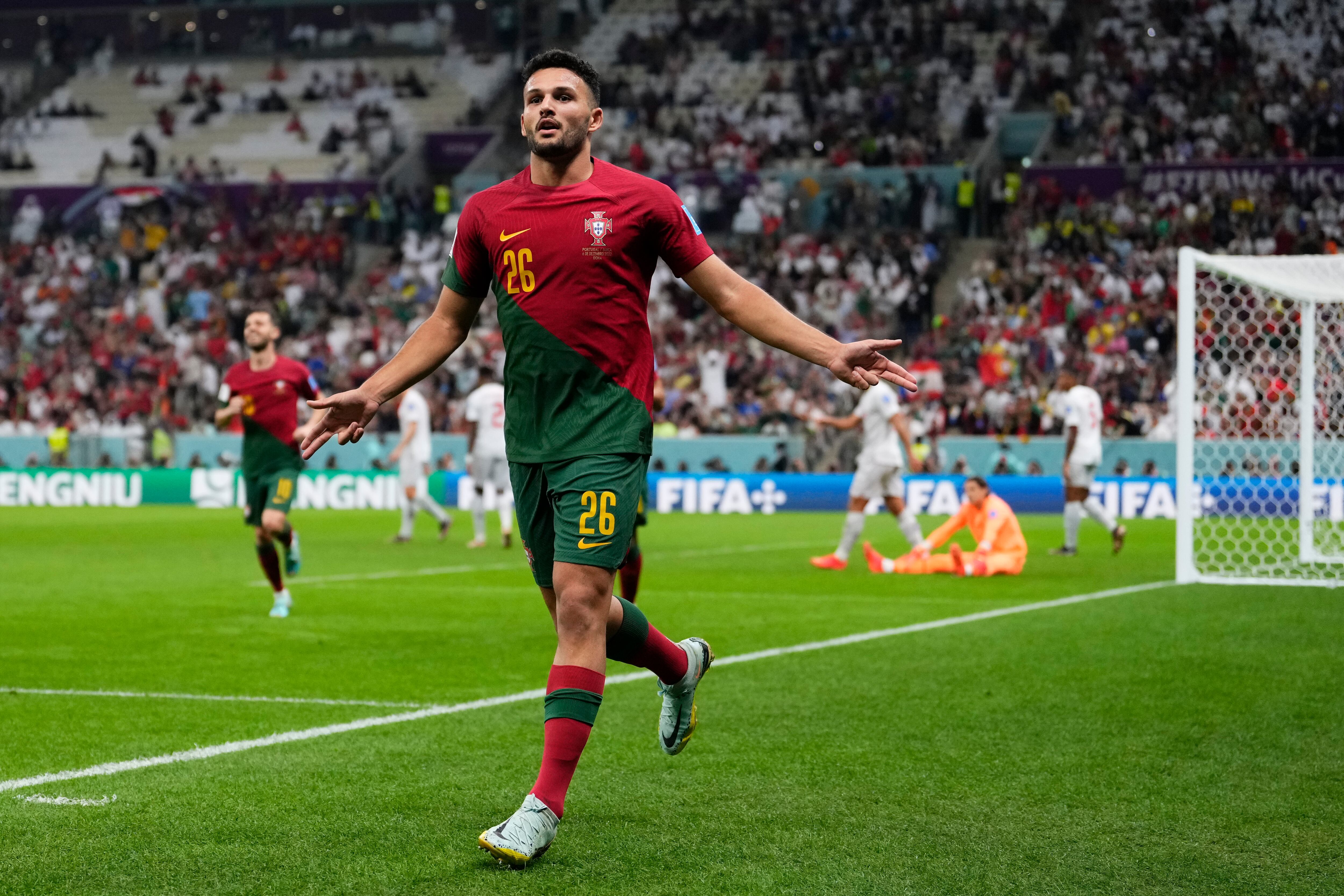 El delantero de 21 años anotó una tripleta el martes después de que manera sorpresiva lo convocaron de titular ante Suiza en lugar de Cristiano Ronaldo, líder anotador masculino en encuentros internacionales. Portugal ganó 6-1 y avanzó a los cuartos de final por tercera ocasión.
