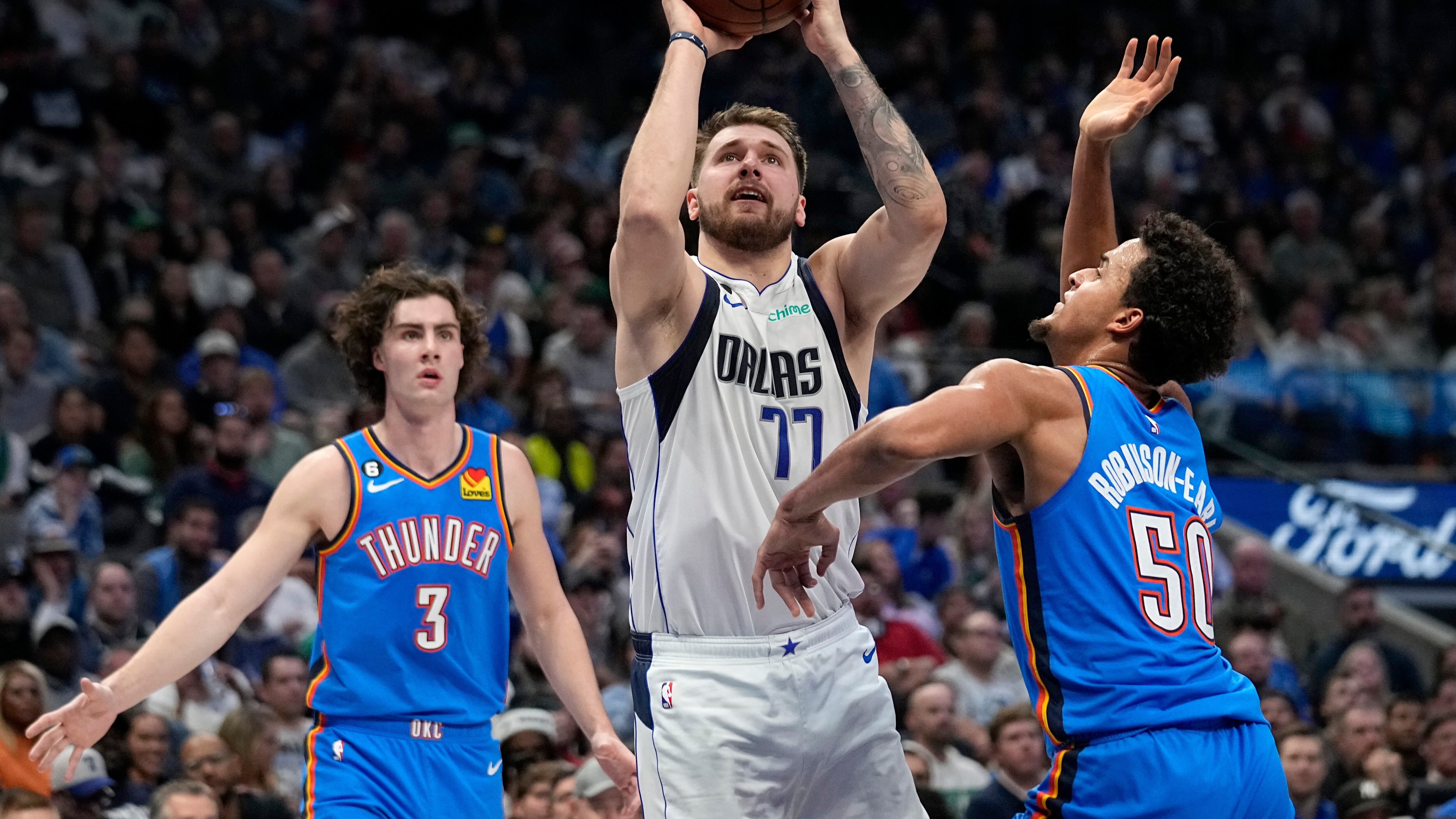 El Thunder recortó un déficit de 15 tantos en la segunda mitad a 119-114 cuando quedaban 28 segundos de juego. Reggie Bullock atinó dos tiros libres a 15,8 segundos del final y Maxi Kleber robó el balón en la siguiente posesión de Oklahoma City.