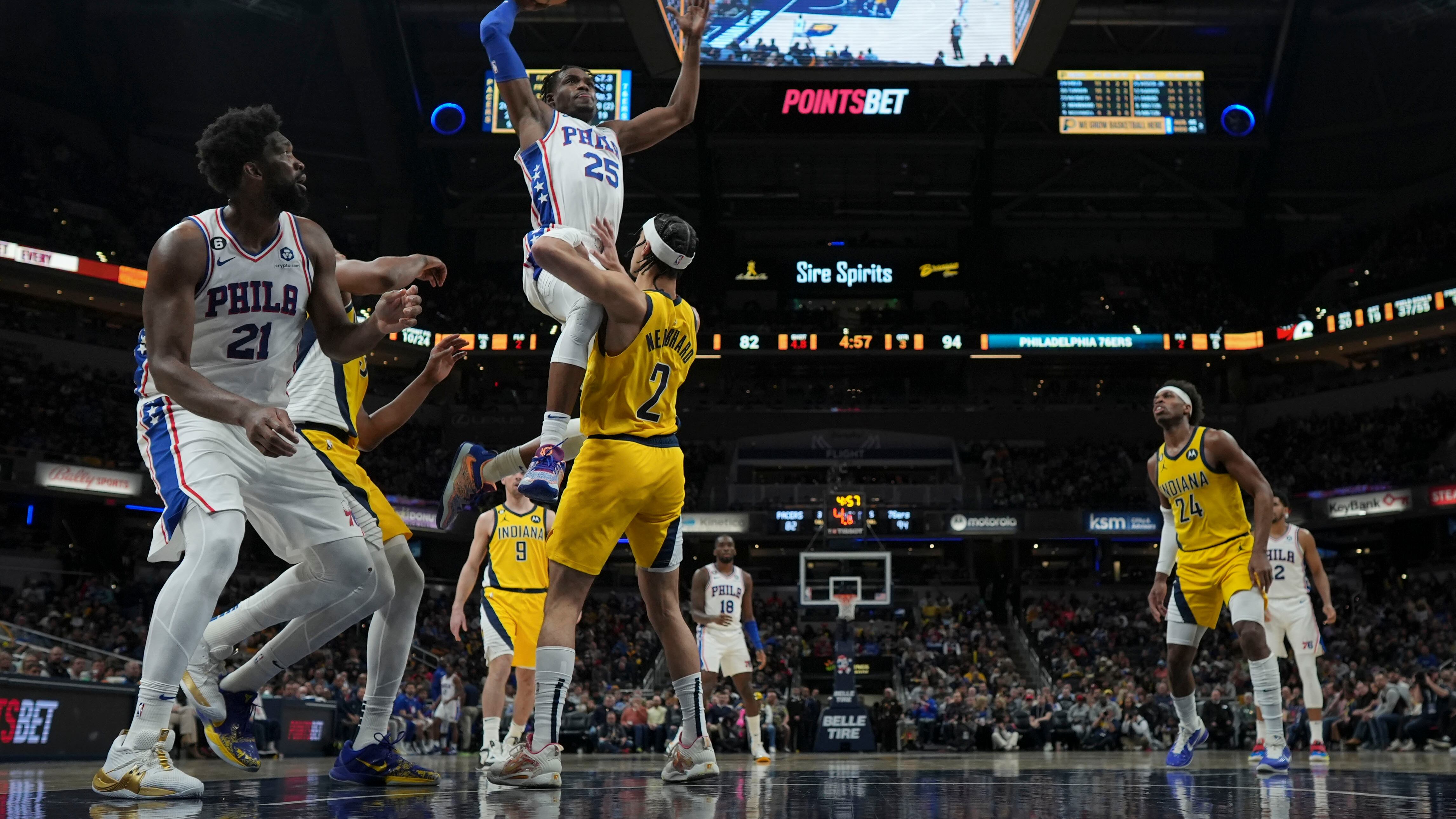 En un partido con equipos que extrañaron a All-Stars, James Harden por Filadelfia y Tyrese Haliburton por Indiana, los 76ers acertaron 61% desde el campo y tuvieron ventaja de hasta 24 puntos y nunca vieron atrás después de recuperarse de un déficit de ocho puntos en el arranque del juego.