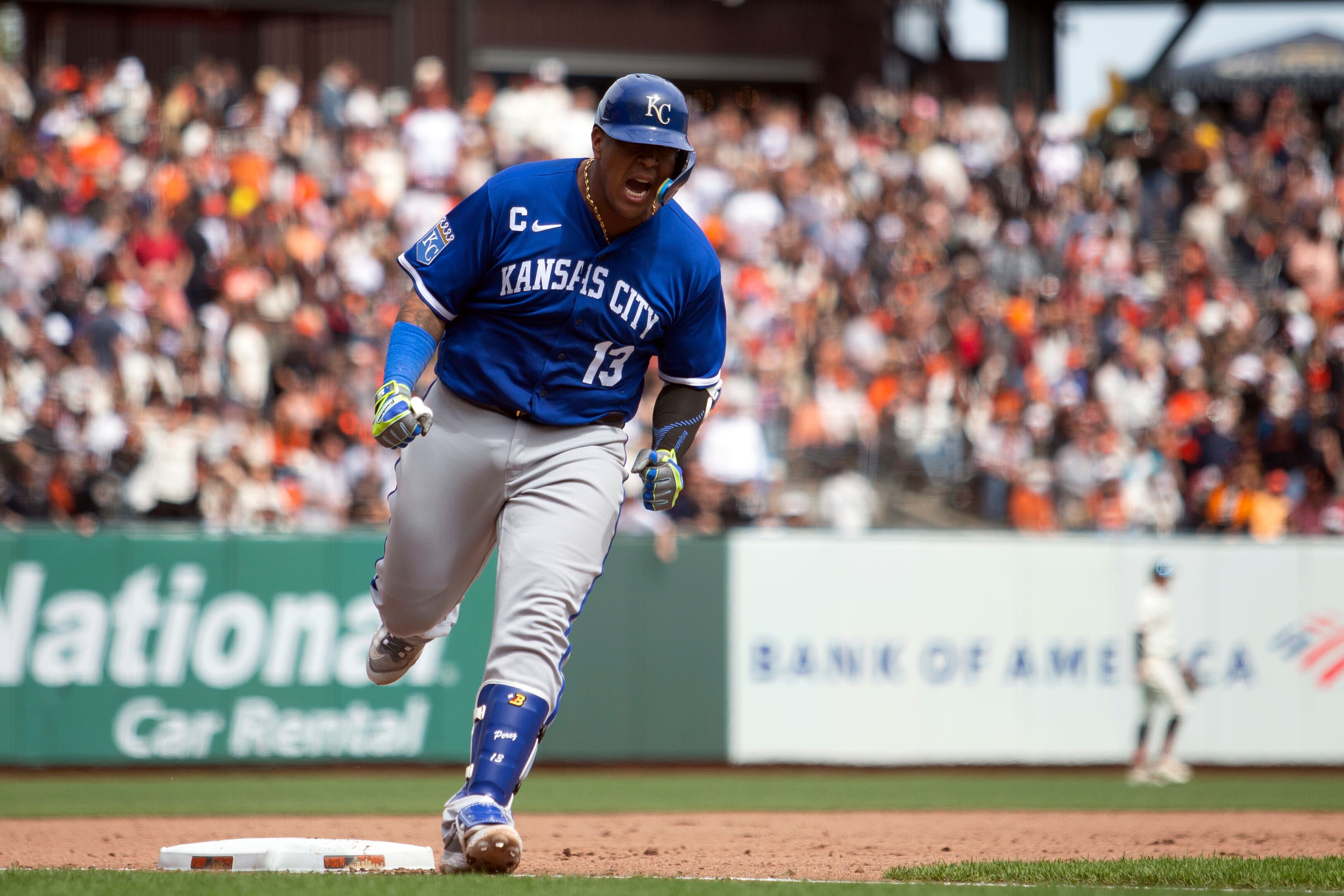 Kansas City estaba abajo por 5-1 en la séptima entrada, cuando el dominicano Franmil Reyes disparó un cuadrangular ante Ross Striplin para reducir la diferencia a tres anotaciones. El venezolano Pérez igualó el duelo con un garrotazo de tres carreras ante Striplin en el octavo episodio.