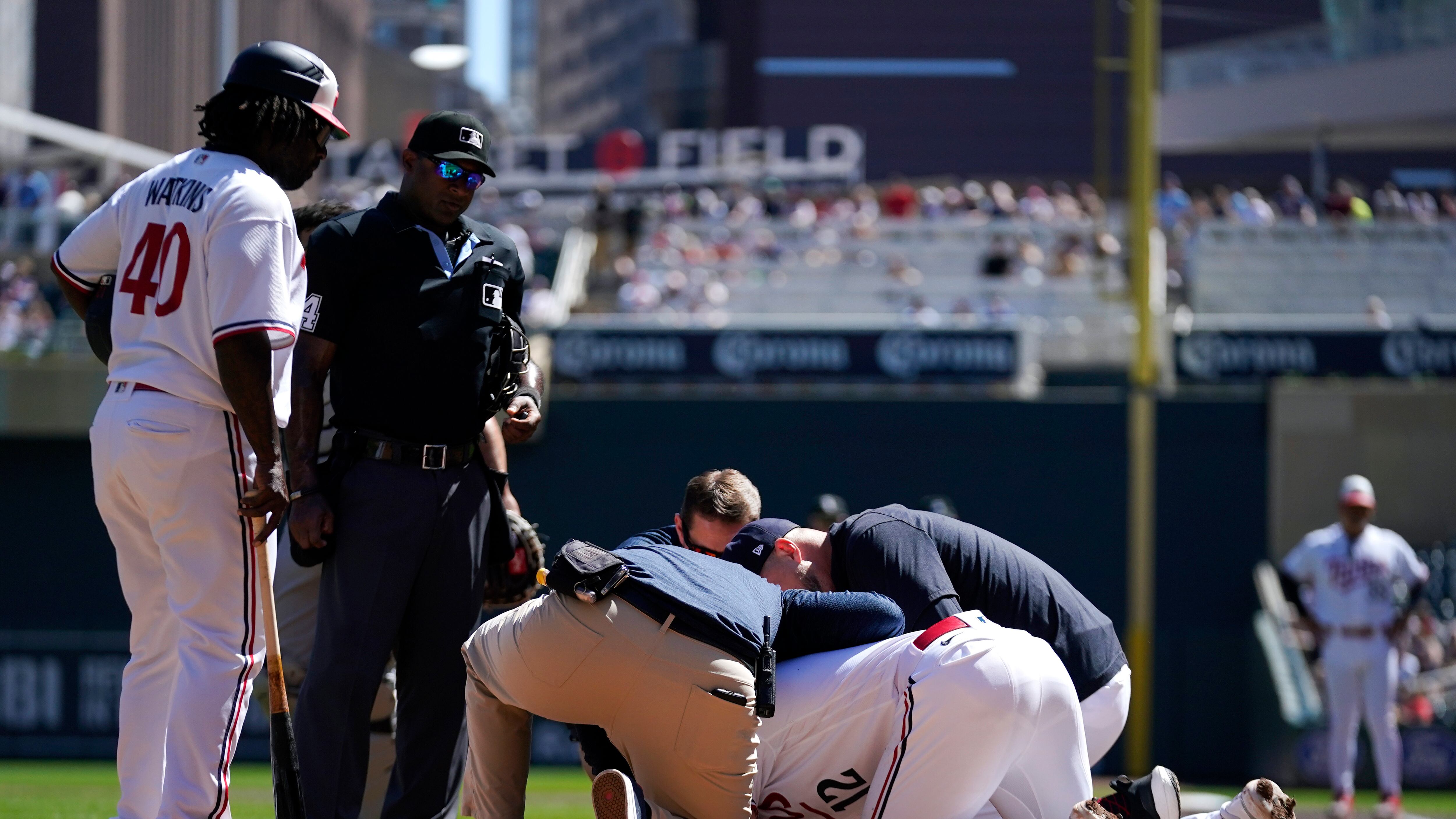 El manager Rocco Baldelli dijo que el diagnóstico inicial no reveló fractura después de que el lanzamiento de Giolito se cerró y noqueó a Farmer en la cuarta entrada. Inmediatamente Giolito se colocó las manos en la cabeza y bajó del montículo para caminar preocupado hacia Farmer, quien yacía tendido de bruces y así permaneció unos minutos mientras era atendido.