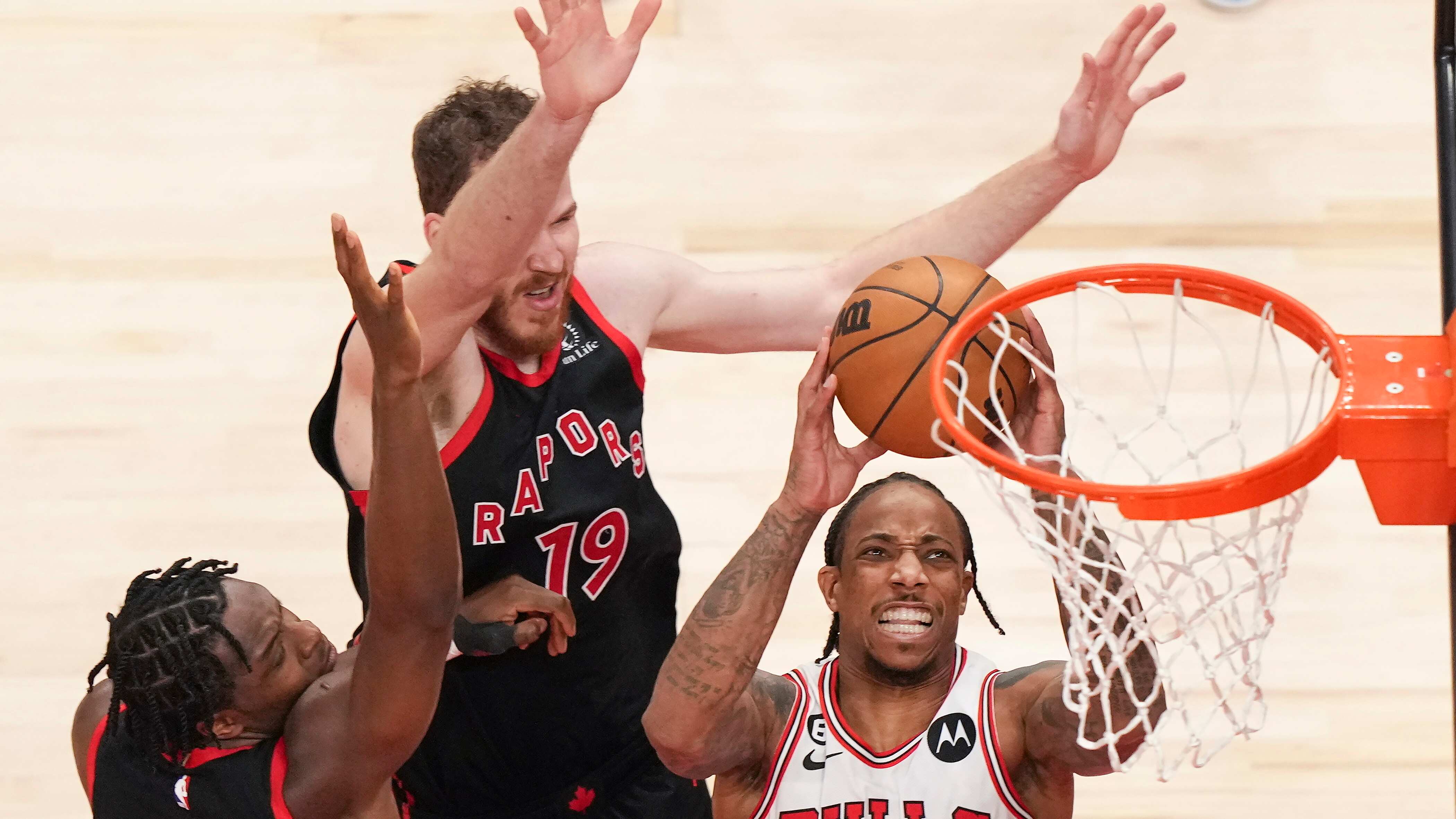 Zach LaVine anotó 39 puntos, DeMar DeRozan añadió 23 ante su equipo anterior y los Bulls de Chicago se sobrepusieron a un déficit de 19 unidades para vencer el miércoles 109-105 a los Raptors de Toronto en un partido del minitorneo de repechaje.