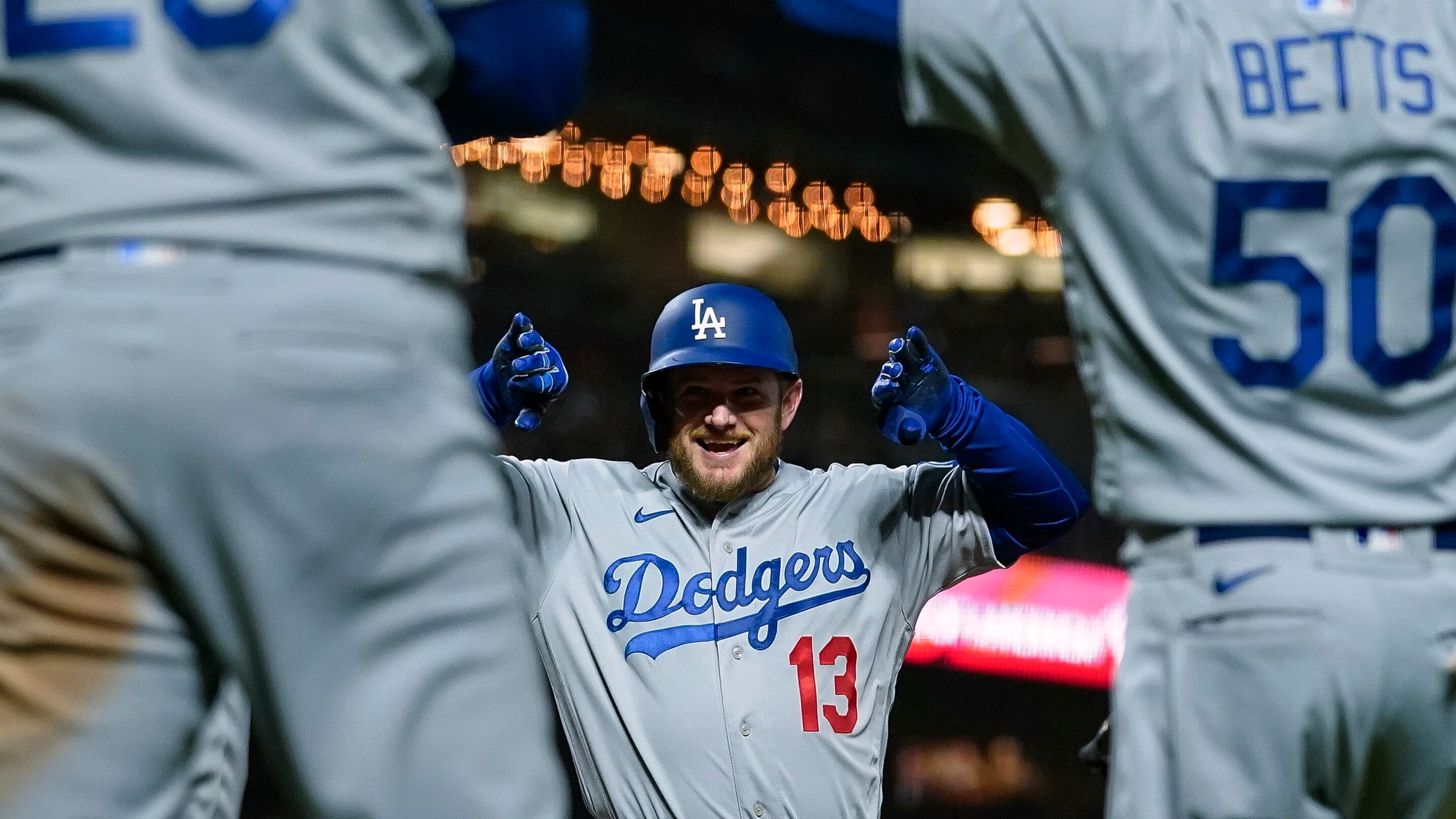 Los Dodgers remontaron en el quinto acto, gracias a cuatro boletos seguidos de Taylor Rogers (0-1). Freddie Freeman recibió una base por bolas con las bases llenas, para que Trayce Thompson anotara la carrera de la ventaja.