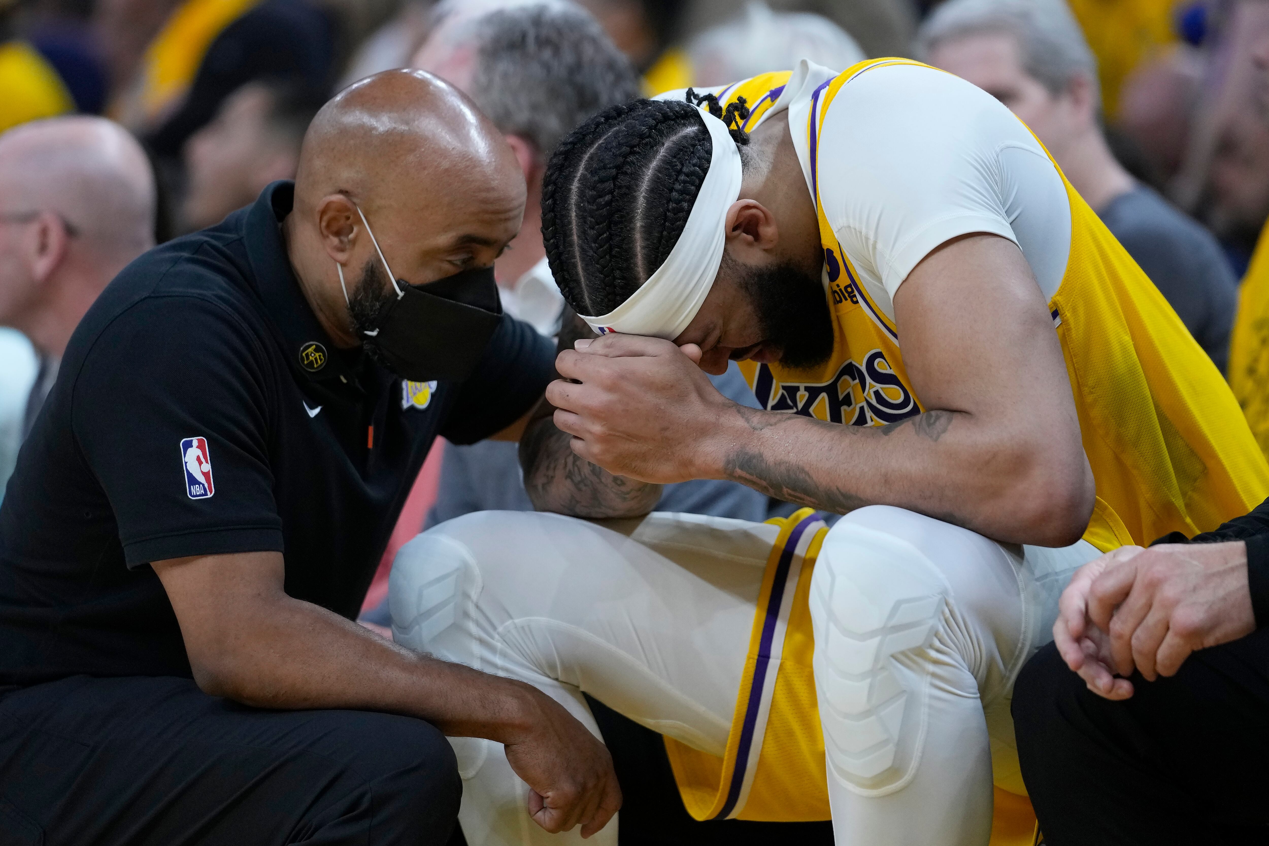 Davis se lastimó en lo que pareció un golpe accidental a su cabeza, por parte de Kevon Looney, de los Warriors, a mediados del cuarto período en el triunfo de Golden State por 121-106, en San Francisco.