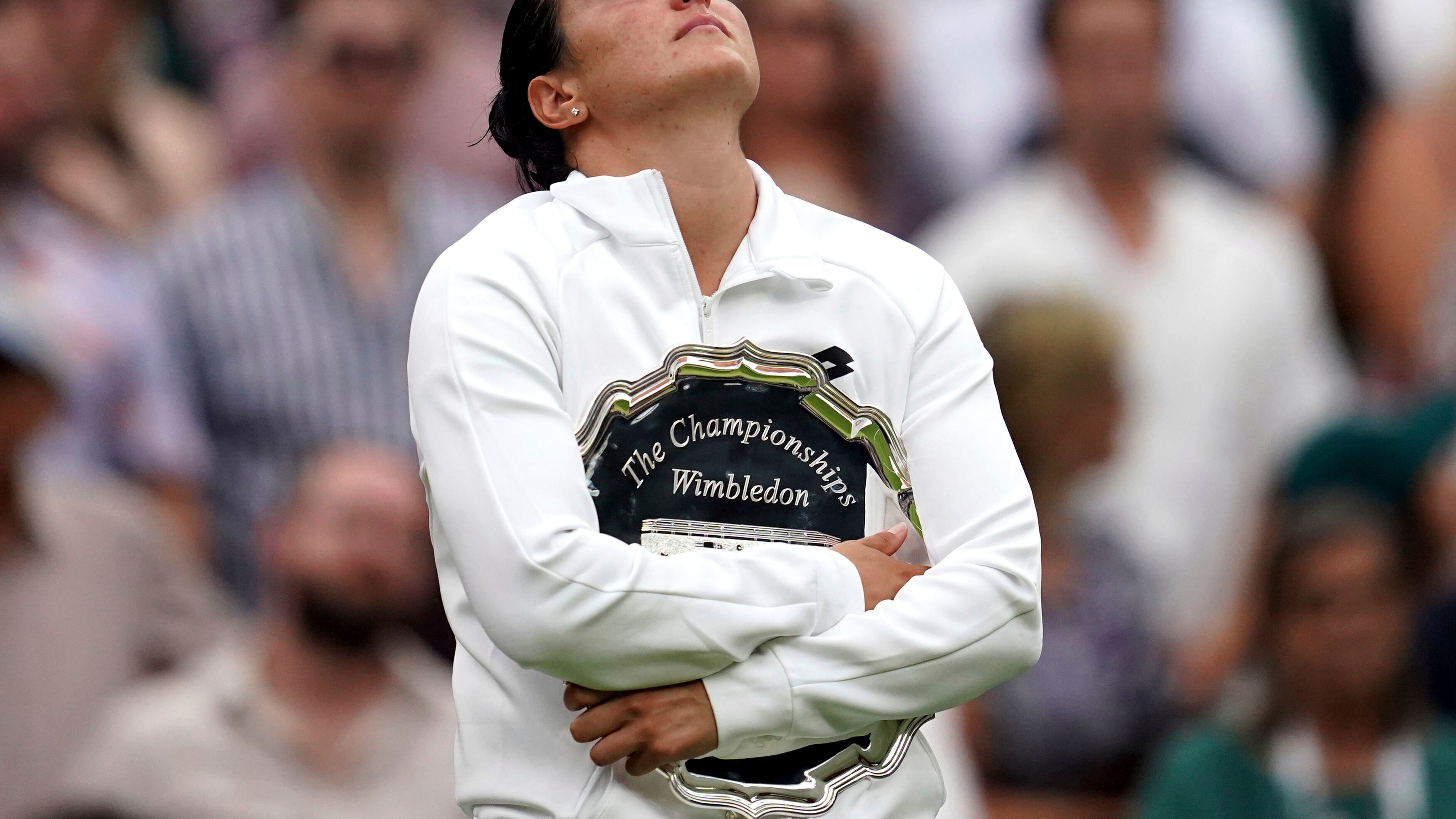 Jabeur aseguró que fue “la derrota más dolorosa de su carrera” y agradeció el abrazo para consolarla de la Princesa Kate de Gales durante la presentación del trofeo en la Cancha Central —"Los abrazos siempre son bienvenidos", dijo la tunecina de 28 años. Además recibió una palabras de aliento de Kim Clijsters, integrante del Salón de la Fama y quien perdió sus cuatro primeras finales en un major antes de ganar cuatro consecutivas.