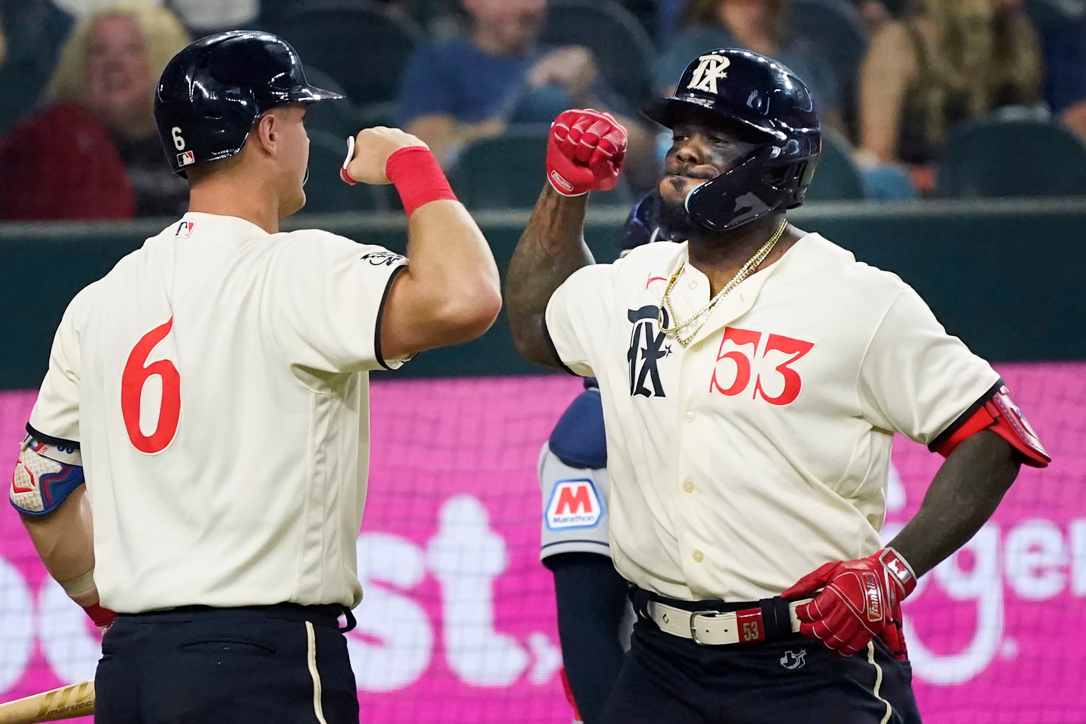 Corey Seager y el cubano Adolis García, seleccionados para el Juego de Estrellas al igual que Heim, aportaron también sendos cuadrangulares.