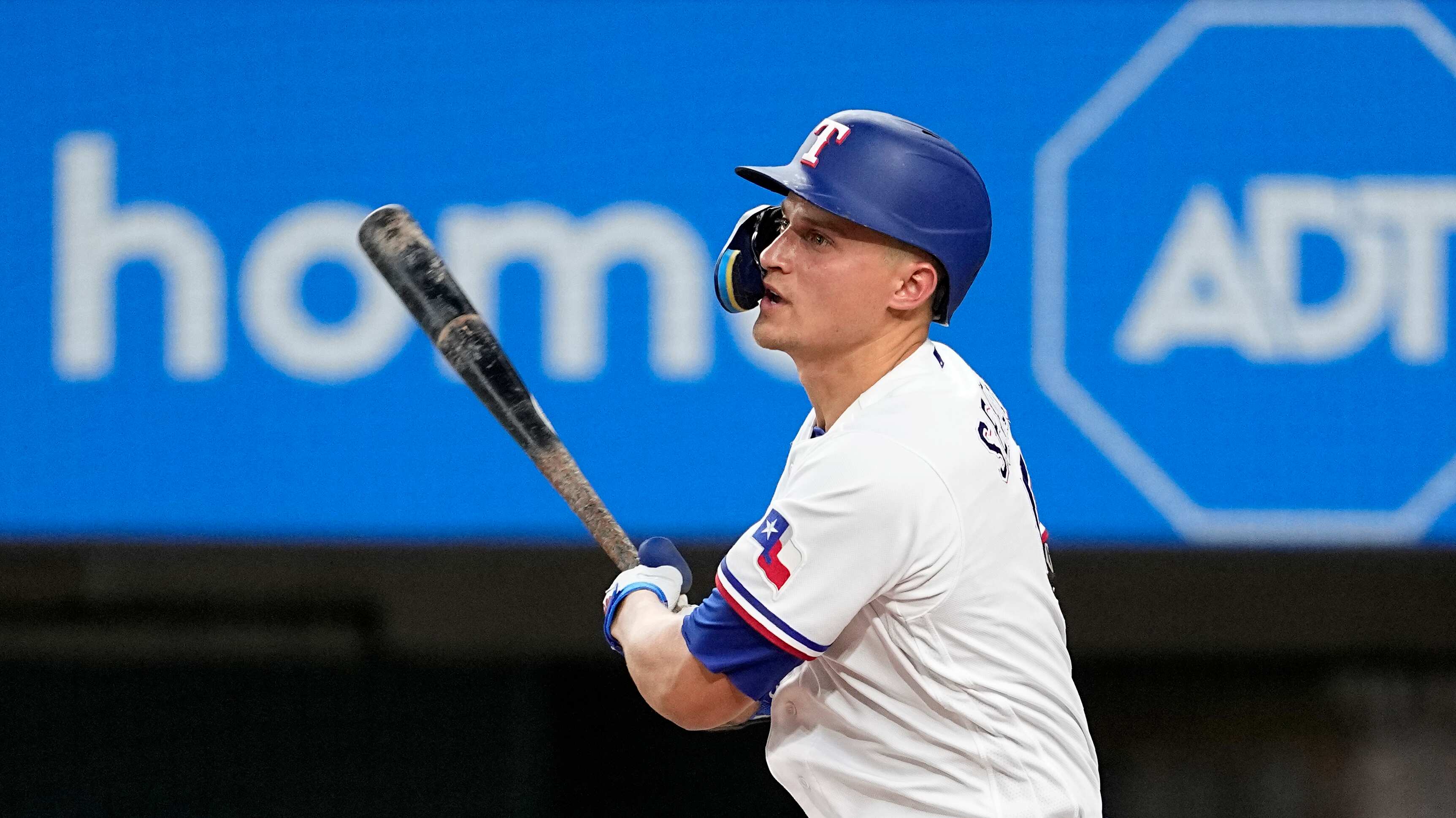 Cory Seager, de los Rangers de Texas, sigue el movimiento después de batear un sencillo productor de una carrera en la segunda entrada del juego de béisbol en contra de los Medias Blancas de Chicago, el miércoles 2 de agosto de 2023, en Arlington, Texa AP (Tony Gutierrez/AP)