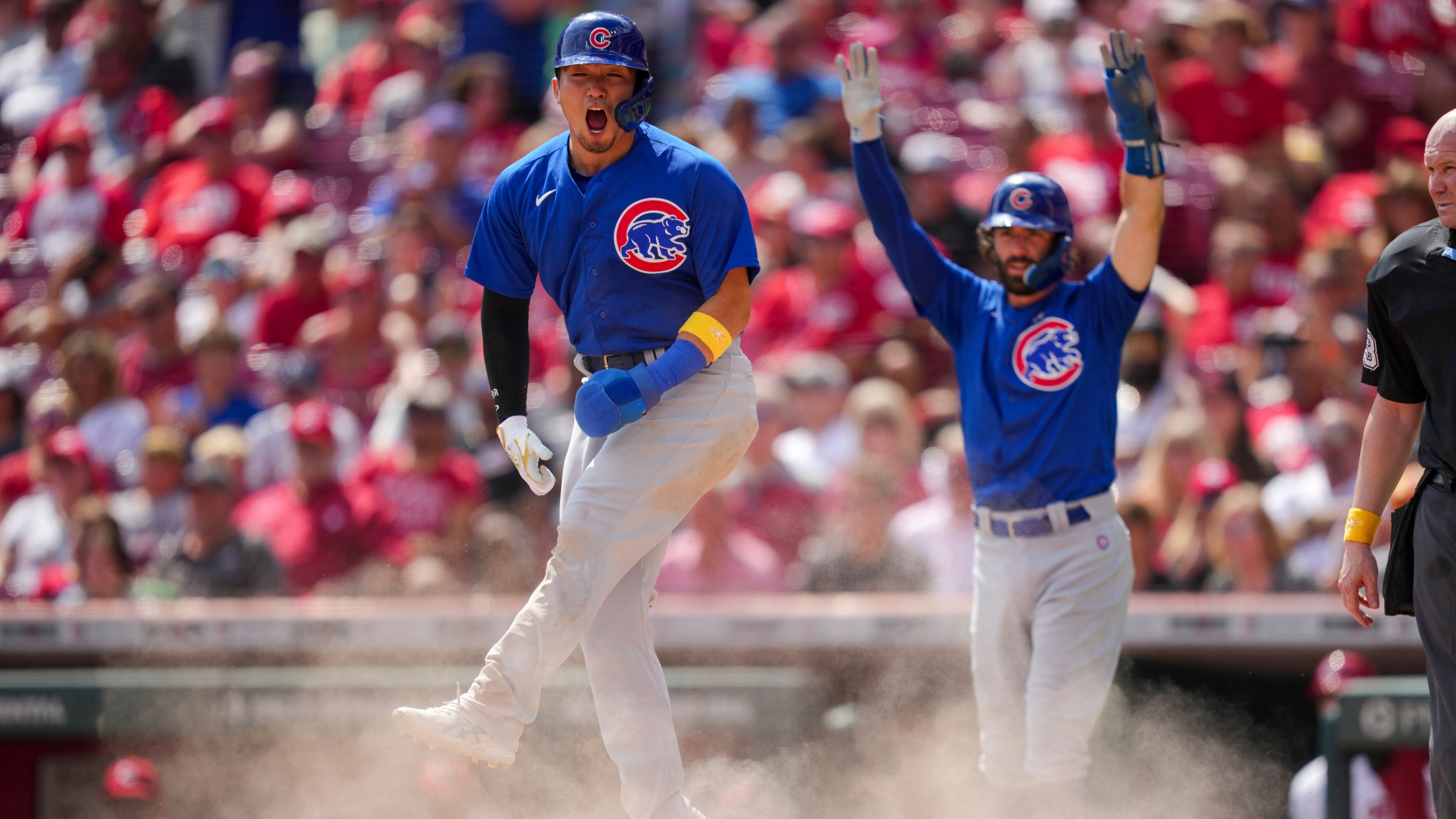 Nick Madrigal y Tauchman produjeron dos carreras cada uno con las bases llenas ante el cerrador puertorriqueño de los Rojos, Alexis Díaz, en el racimo de siete carreras por parte de los Cachorros en el octavo capítulo. Bellinger trajo una más con un elevado de sacrificio, y un doble por parte de Dansby Swanson empujó dos más antes que los Rojos pudieran salir de la incómoda entrada.