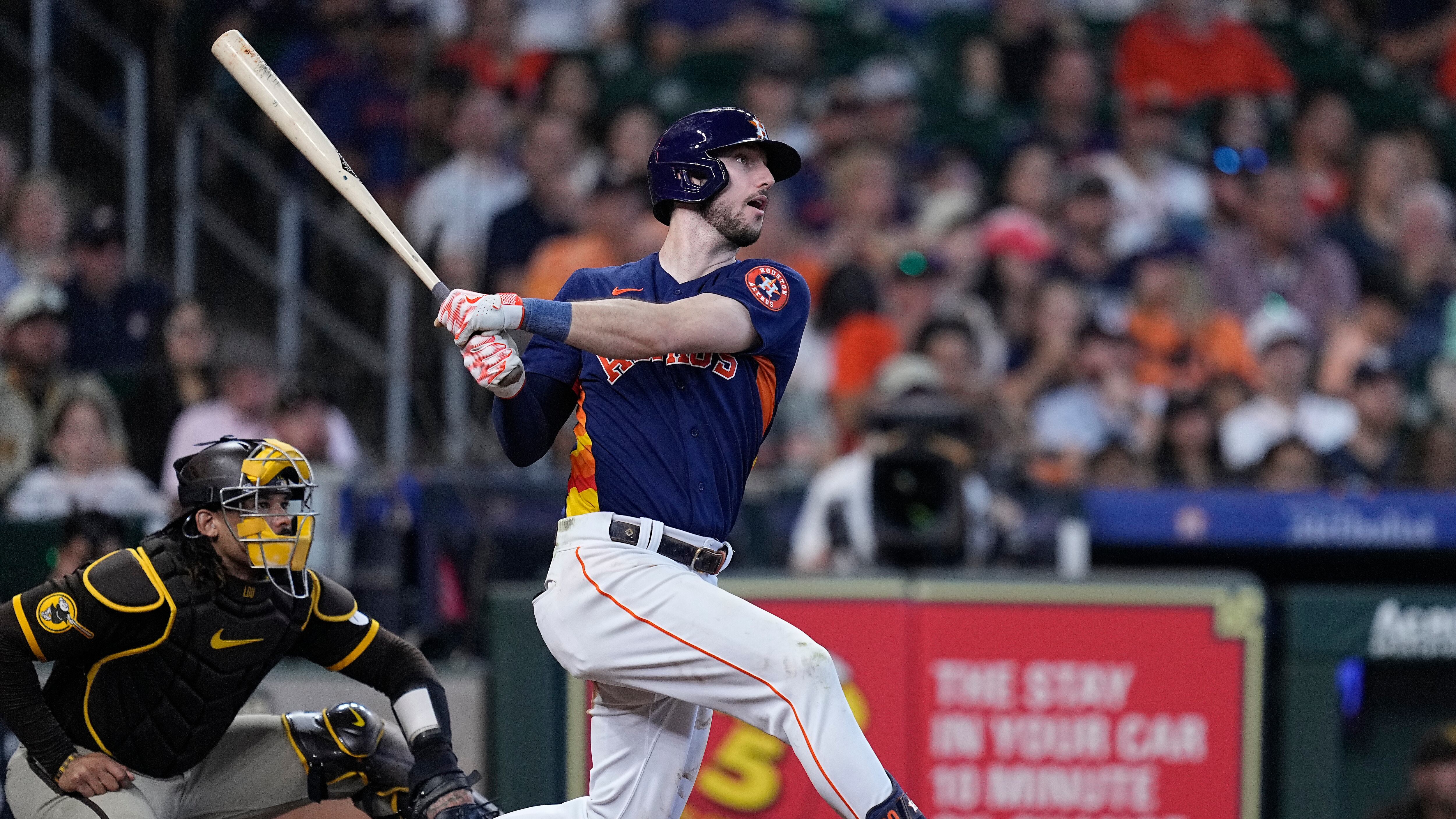 HOUSTON (AP) — Kyle Tucker conectó un par de triples dentro del racimo de ocho carreras en el sexto episodio, el venezolano José Altuve disparó un cuadrangular y remolcó tres carreras, y los líderes Astros de Houston apalearon el domingo 12-2 a los Padres de San Diego.