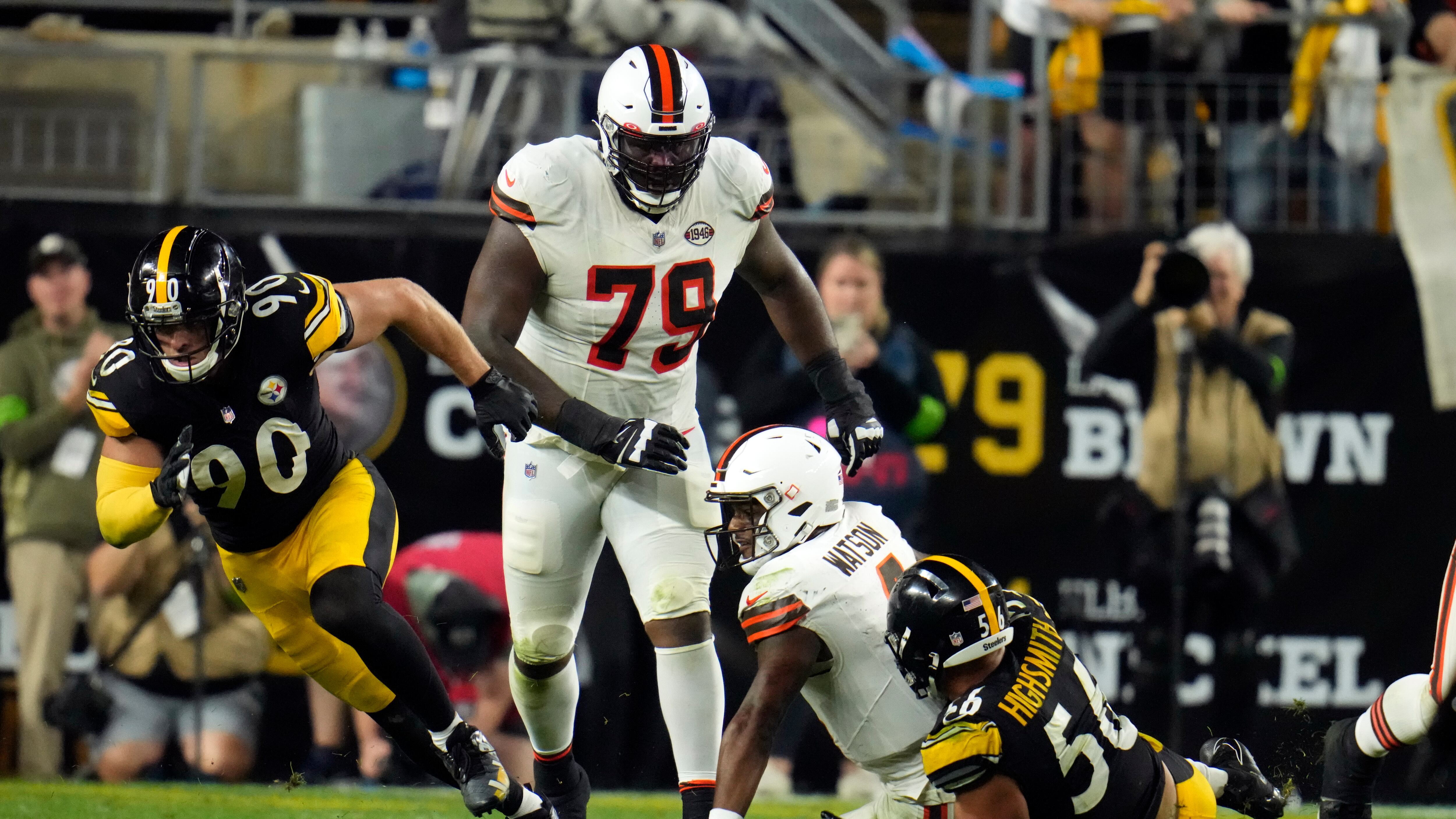 Watt recuperó la bola y corrió a la zona de anotación para que Pittsburgh extendiera su racha a 21 victorias en casa en juegos de lunes —la racha se remonta a 1991. Cleveland permitió que un rival anotara dos touchdowns defensivos por primera vez desde que Pittsburgh lo hizo el 16 de octubre de 1983.
