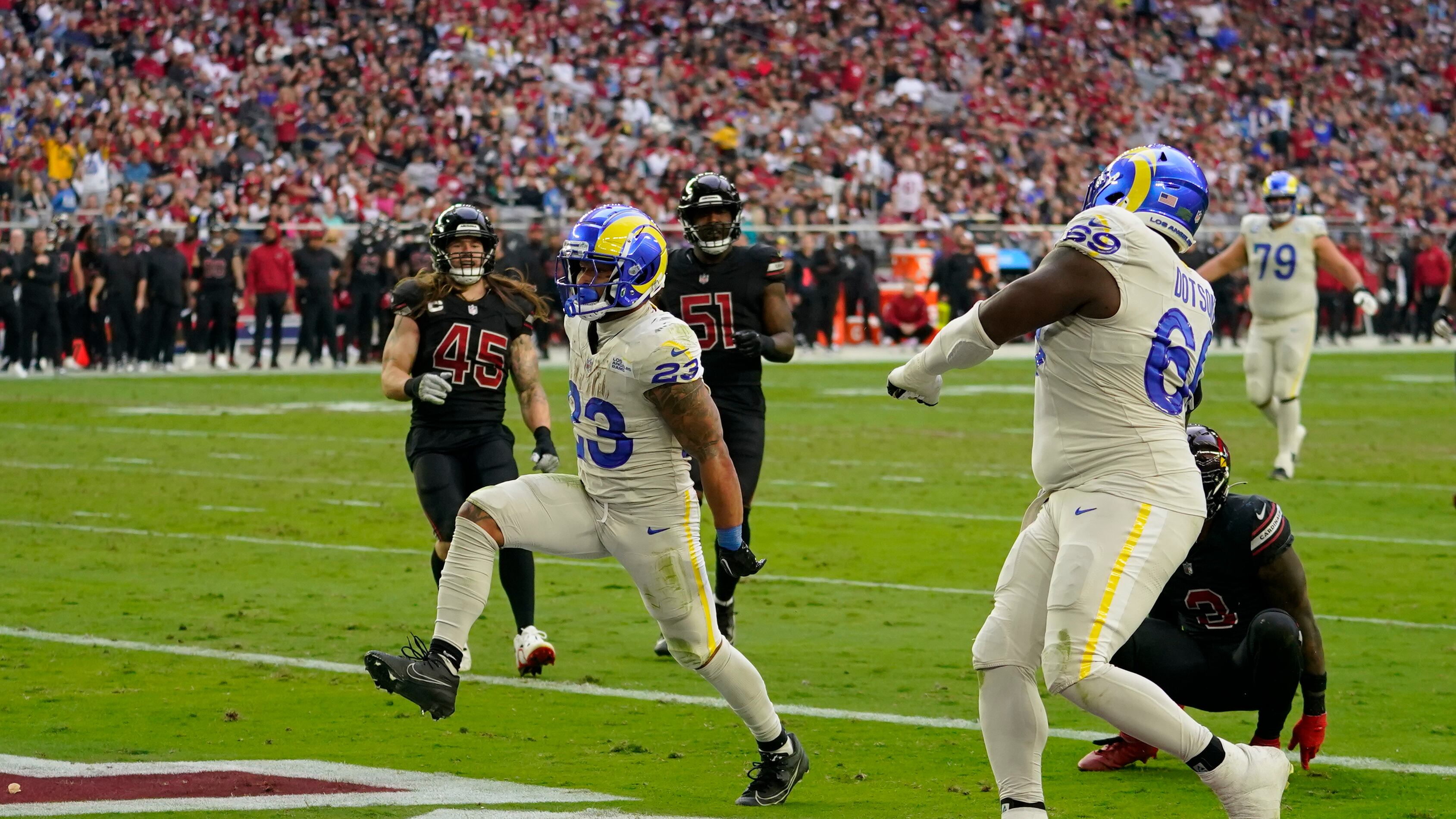 Los Rams (5-6) ganaron por secunda semana seguida y siguieron con su dominio sobre rivales del Oeste de la NFC, ganando por novena vez consecutiva a Arizona, remontándose a 2014.