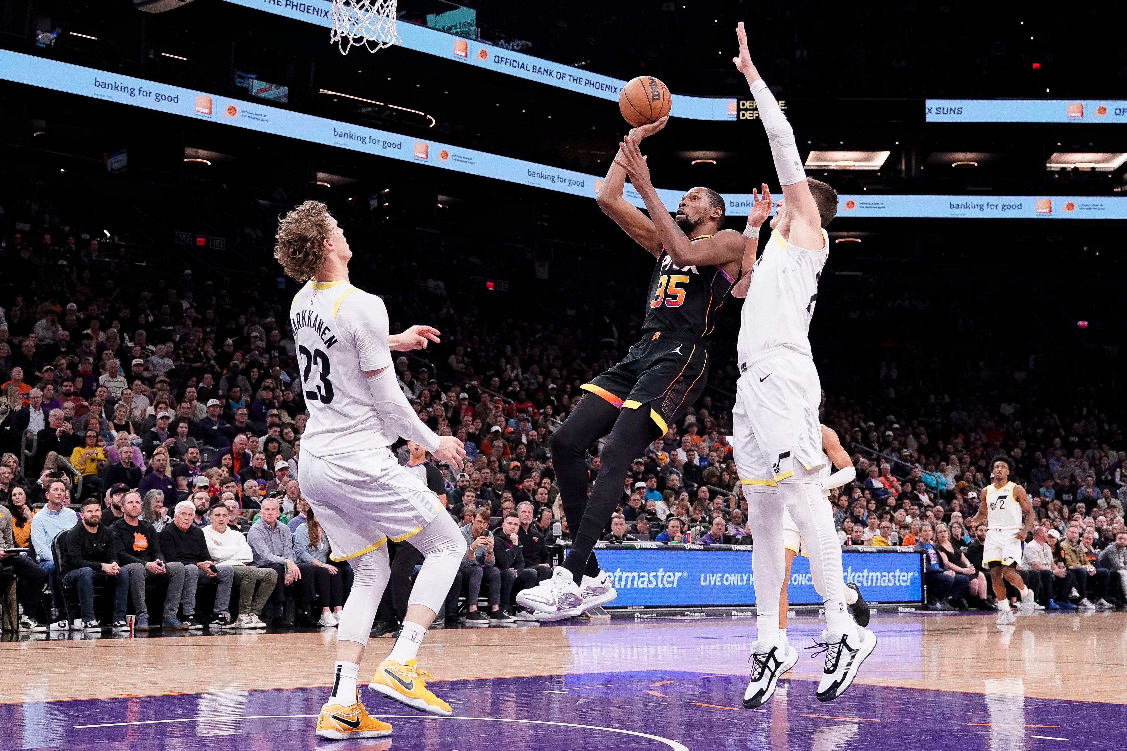 PHOENIX (AP) — Kevin Durant embocó 31 puntos, Bradley Beal agregó 30 y los Suns de Phoenix, carentes de su astro Devin Booker por un dolor en la cadera izquierda, vencieron el jueves 129-115 al Jazz de Utah.