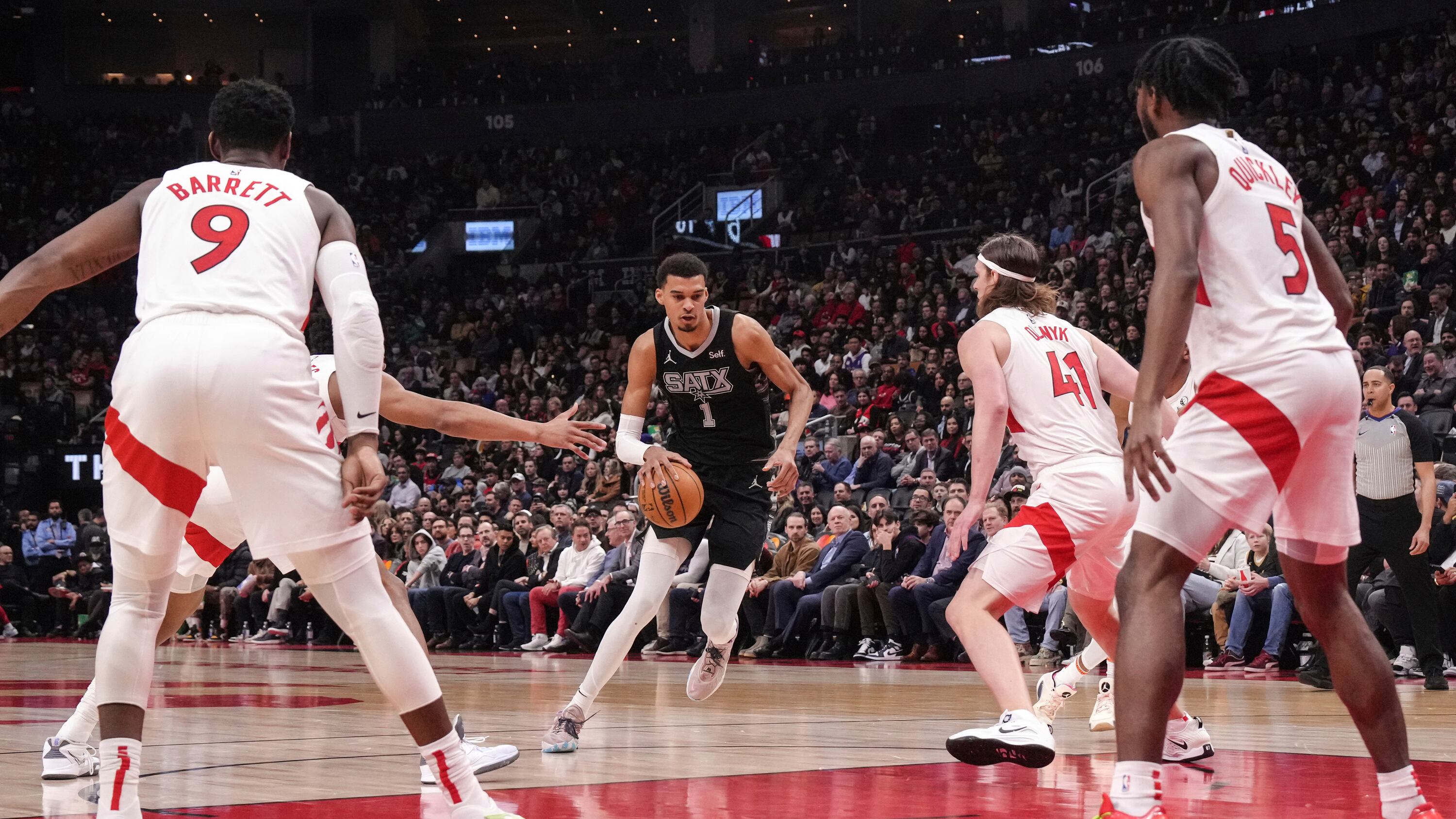 TORONTO (AP) — Victor Wembanyama anotó 27 puntos, bajó 14 rebotes y estableció marca en su carrera con 10 bloqueos en su segundo triple-doble, Devin Vassell añadió 25 unidades y los Spurs de San Antonio se libraron de su racha de siete derrotas al pasar por encima de los Raptors de Toronto 122-99 el lunes por la noche.