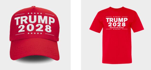 The Trump Organization has started selling caps and t-shirts with the inscription “Trump 2028” in its official online store, reigniting speculation about the possibility of President Donald Trump running for a third term, despite constitutional restrictions prohibiting it.
