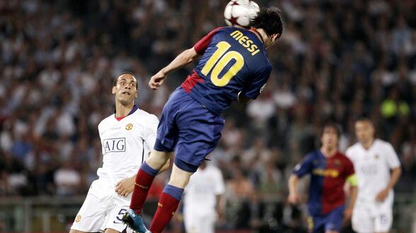 Messi was left suspended in the air with the header that sealed the 2-0 victory in the 2009 Champions League final against Manchester United in Rome.