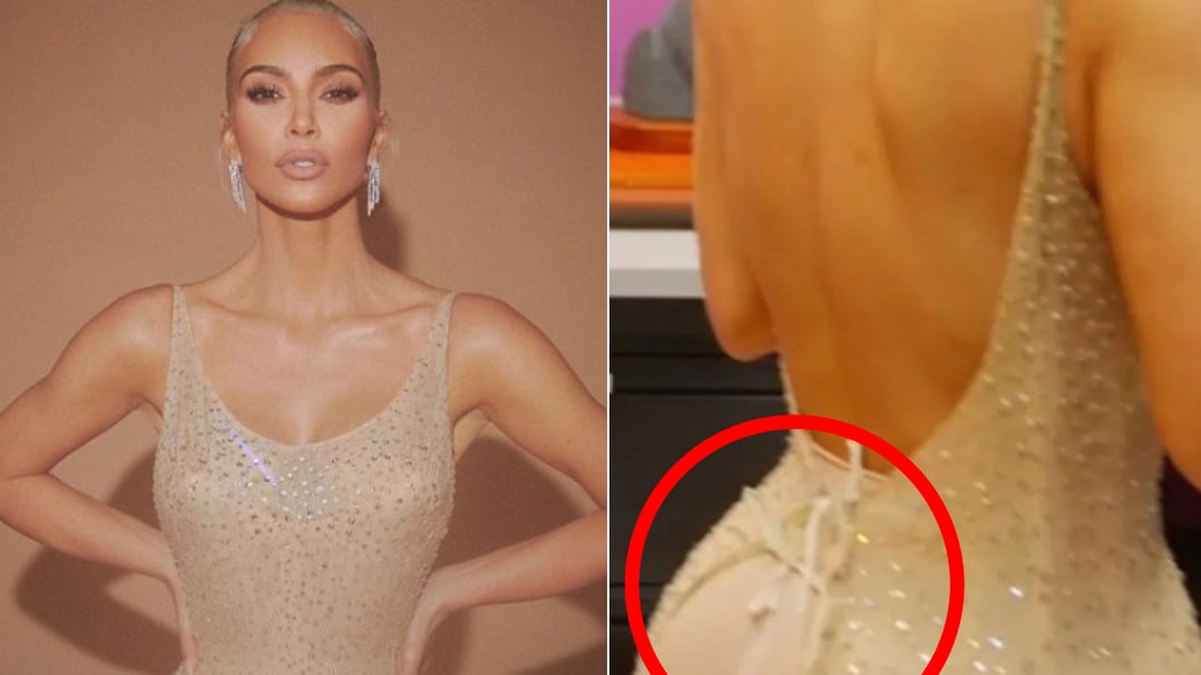 Unos días después del evento, circularon unas imágenes de Kim en las que se ve que el vestido no estaba cerrado del y que disimularon con una extensión para que pareciera que había entrado a la perfección.
