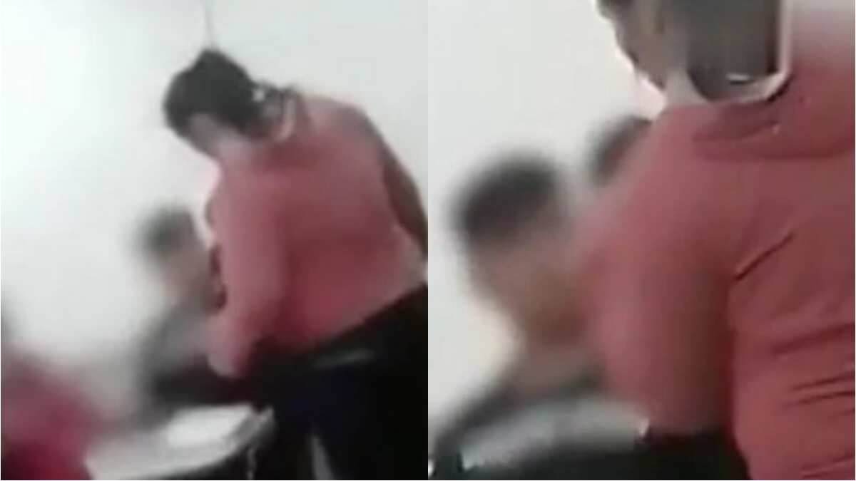 Esto hasta que una mujer irrumpió en el aula y se dirigió directamente hacía uno de los alumnos que se encontraba sentado en su puesto.