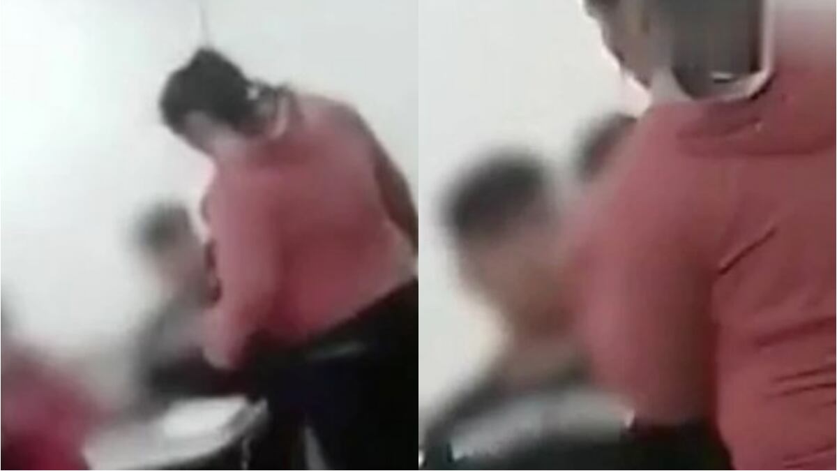 Una mujer ingresó a una sala de clases de un colegio y agredió a un estudiante que habría amenazado a su hijo. El hecho quedó captado a través de un video.