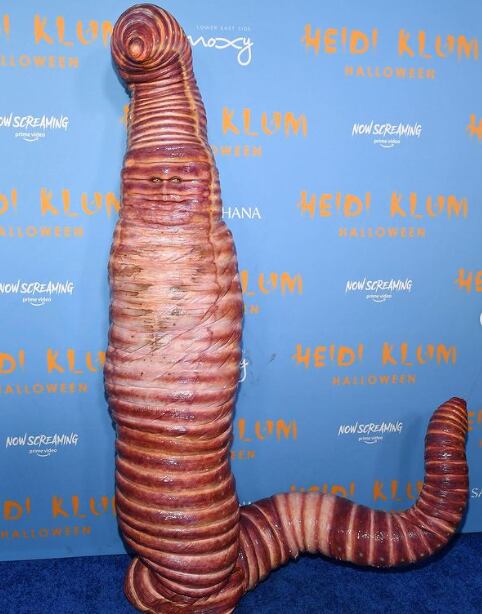 Después de una larga espera por la pandemia, este 31 de octubre, Klum volvió a hacer una fiesta privada con las celebridades más top de Hollywood y recibió a sus invitados disfrazada como una lombriz gigante. Heidi Klum también se ha disfrazado de Jessica Rabbit y Alien.