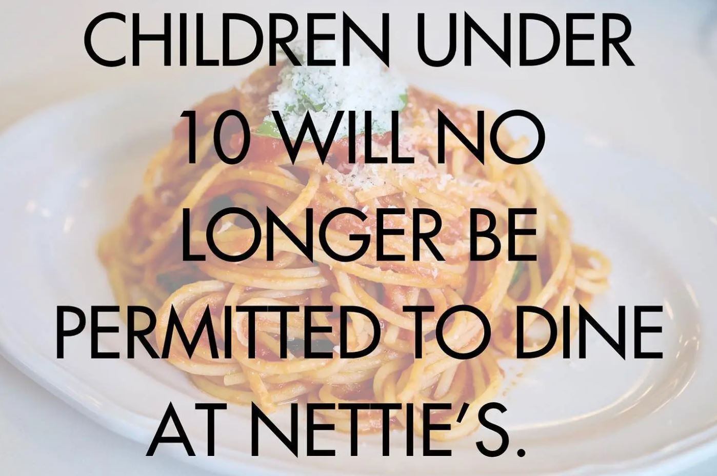 A principios de este mes, Nettie’s House of Spaghetti en Tinton Falls, NJ, hizo un anuncio controvertido: ya no atenderán a niños menores de 10 años. La declaración fue noticia mucho más allá del Garden State, dividiendo a los padres y sus compañeros sin hijos.
