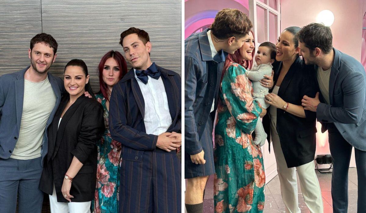 En las imágenes vemos a los integrantes de RBD muy sonrientes junto a Lía, y es que Dulce María quien la está cargando.