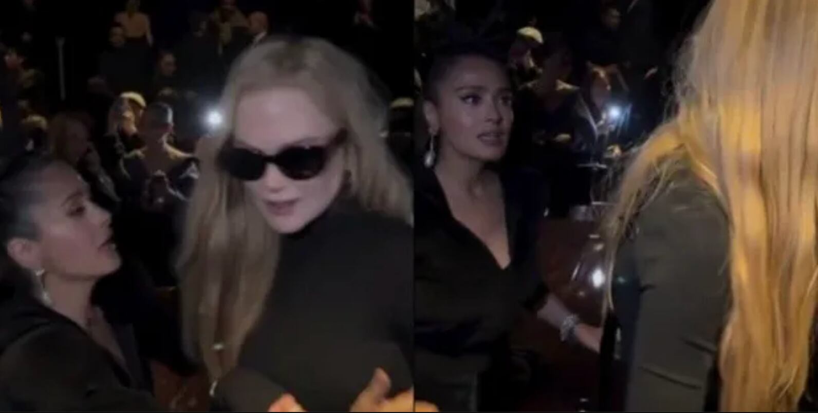 El desfile, que se celebró en una atmósfera de glamour y sofisticación, pareció cobrar vida con la interacción entre Kidman y Hayek. Mientras ambas se encontraban en el front row, las cámaras captaron un intercambio que muchos interpretaron como incómodo.