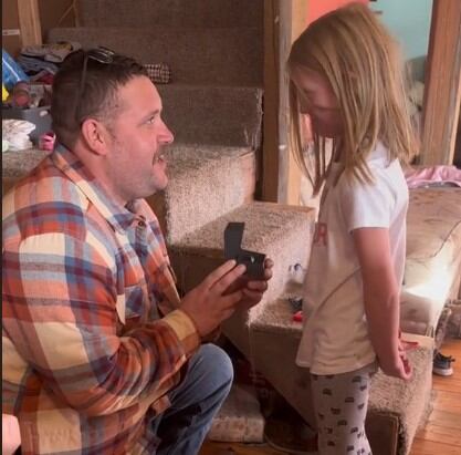 La publicación la hizo Taylor Nally, una mujer estadounidense, que mostró el conmovedor gesto de su novio y a su hija aceptándolo entre sollozos como su nuevo papá.
