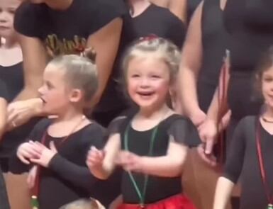 Y es que la pequeña, de tres años, engancha a todos con su tierna reacción al ver a sus papás en su primer recital de baile de la escuela. Se llama Emmy Krow y vive en Estados Unidos.