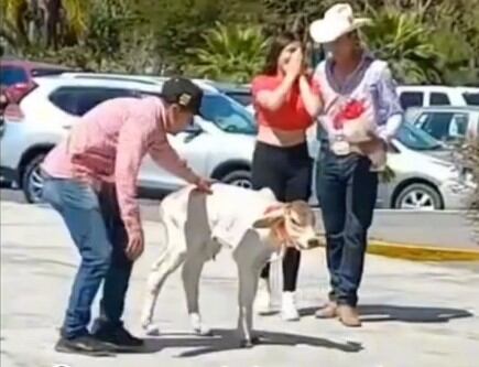 Dicen que en el amor todo se vale, y quizá sea cierto. Cada quien regala lo que es más valioso para él o para ella, según sus costumbres. En este caso, un joven vaquero regala a la chica que le gusta, algo no muy convencional: un becerro.