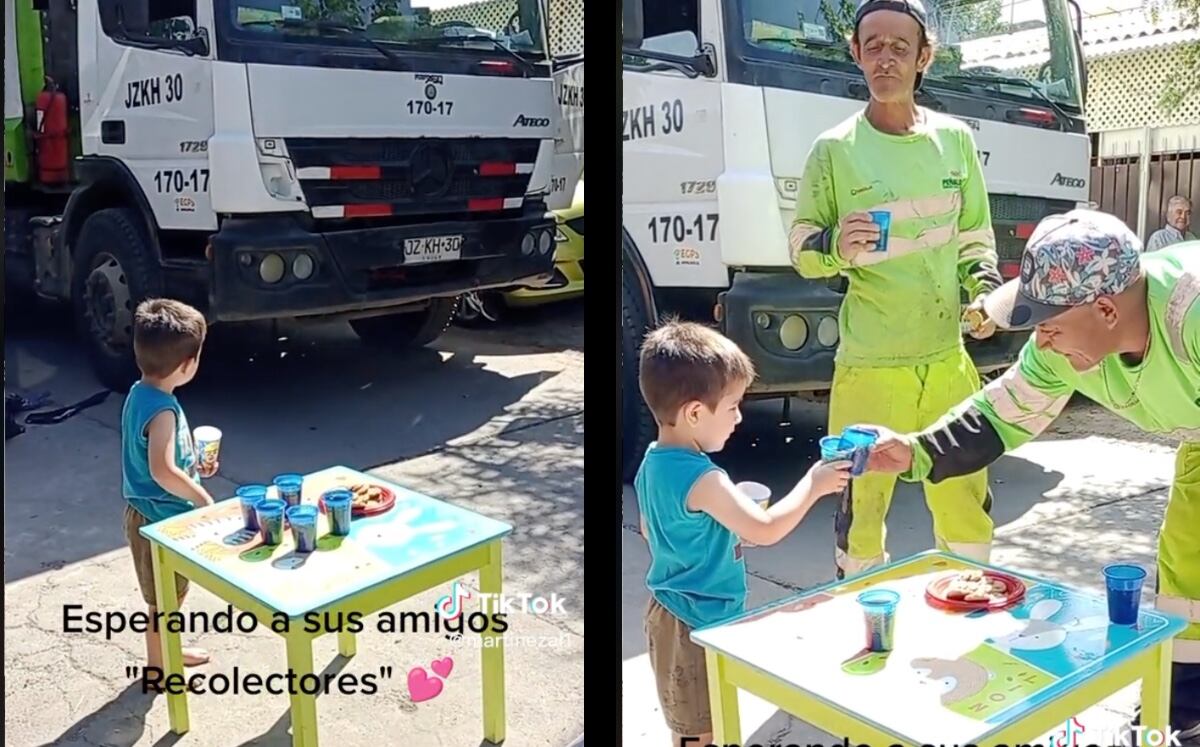 En el video publicado a través de la cuenta de su mamá @martinezal1, se puede ver al niño esperando pacientemente a que los recolectores de basura lleguen a su casa junto con una pequeña mesa con bebidas y unas galletas. Cuando finalmente llegan, el niño les ofrece los alimentos que tenía preparado con una sonrisa en el rostro, y los trabajadores agradecidos la aceptan con una sonrisa.