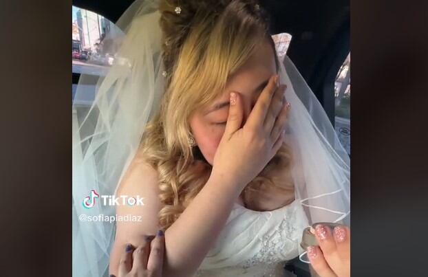En el video, se ve a la joven mujer con su vestido de novia. Iba en el carro, rumbo a la iglesia para casarse. Como toda novia, iba muy bien maquillada, pero la tiktoker le ofreció tres mil dólares por quitarse el maquillaje, lo que la hizo cambiar el sueño que siempre tuvo de presentarse bella con maquillaje ante el altar.