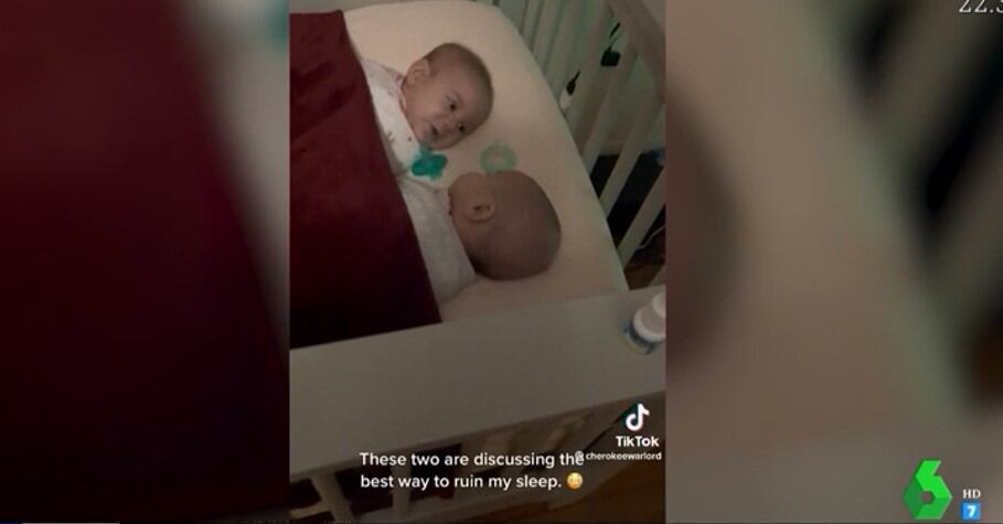 El video muestra a los dos bebés acostados juntos en una cuna, haciendo sonidos. Parece que están hablando entre ellos, intercambiando ideas y emociones. Aunque no podemos entender lo que están diciendo, su lenguaje corporal es suficiente para hacernos saber que están disfrutando de la compañía del otro.