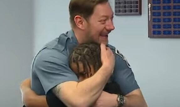 Ambos se abrazaron, conmoviendo a todos en la fiesta. El video del reencuentro lo publicó Good Morning America, que además presentó las palabras de agradecimiento del detective por el homenaje.