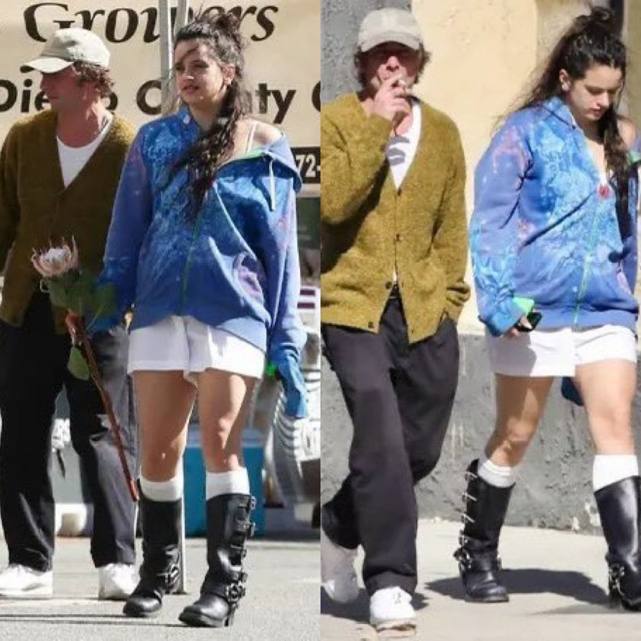 En otras imágenes, Rosalía cargaba una sola flor y White tomaba un descanso para fumar en la acera. Ambos fueron vistos previamente saliendo del cine, después se dice que cenaron juntos esa misma noche. Sin embargo, ninguno de los dos ha confirmado si mantienen algún tipo de relación. En agosto, White fue visto besando a la actriz Ashley Moore mientras se divorciaba de su esposa, Addison Timlin.
