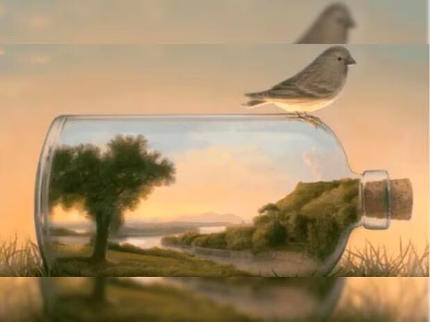 Botella con paisaje
