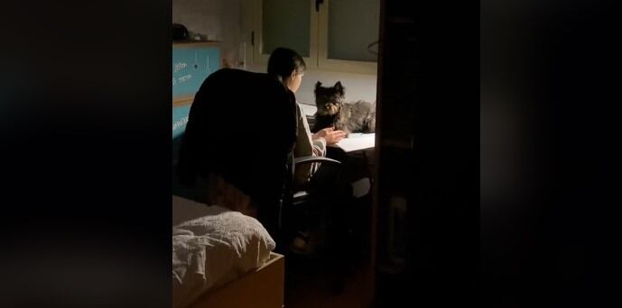 En momentos de tensión, las mascotas siempre son una fiel compañía. Ejemplo de ello, es el video viral de una chica de Calahorra, España, quien pasa la penumbra de la noche estudiando con su perra Nala que no se le despega de al lado.