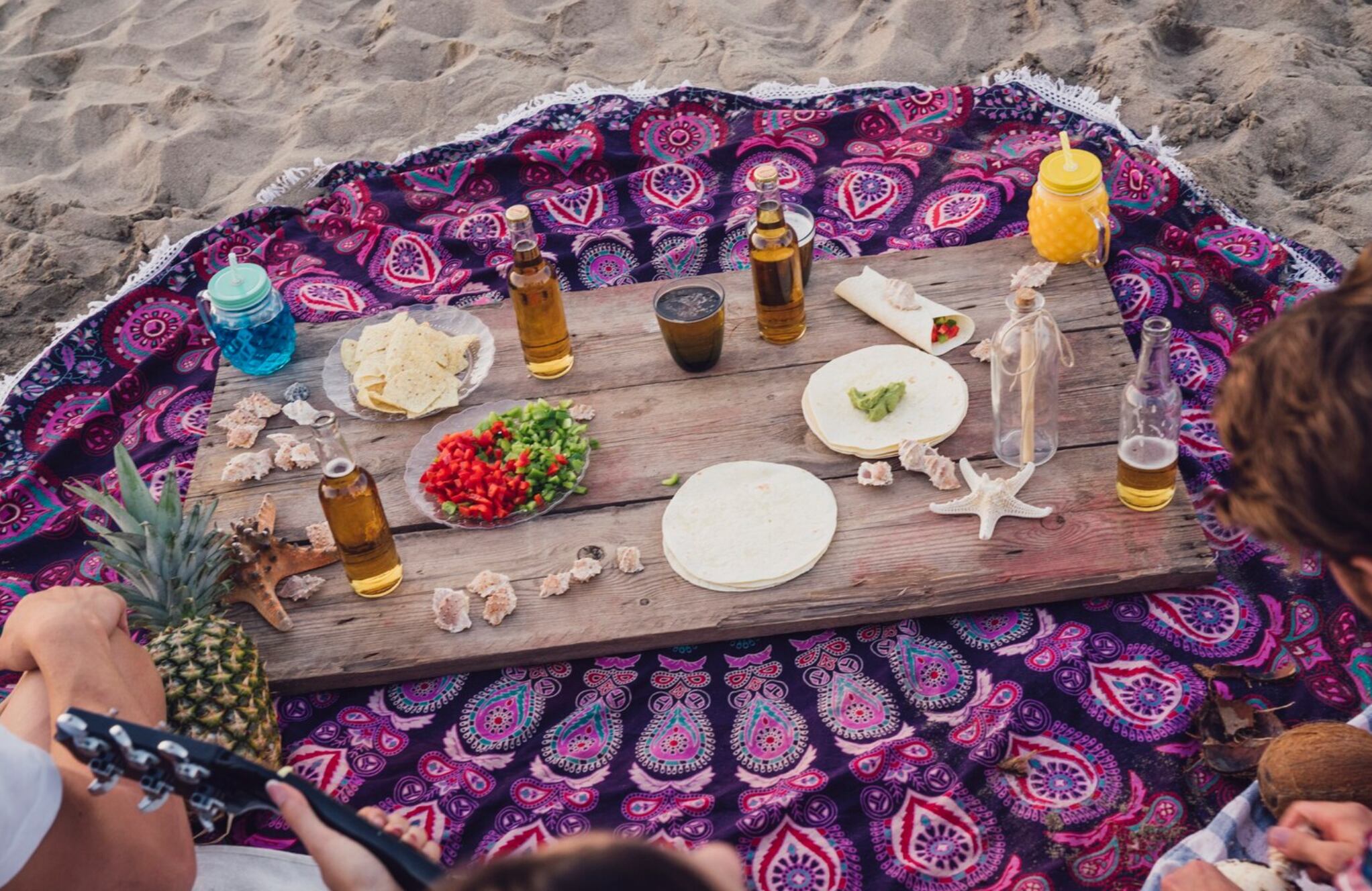Crea estaciones de degustación para agregar variedad a tu picnic. Configura una estación de degustación de quesos con una selección de quesos gourmet y acompañamientos. Otra idea es una estación de cócteles o bebidas refrescantes donde los invitados pueden mezclar sus propias creaciones. Las estaciones de degustación agregan un toque sofisticado y permiten a los invitados experimentar una amplia gama de sabores.