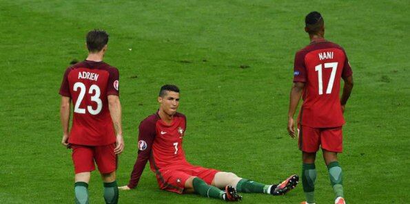 Durante el enfrentamiento de Portugal y Francia en la gran final de la Eurocopa 2016, Cristiano Ronaldo sufrió una lesión al minuto 23 que le impidió continuar en el campo de juego.