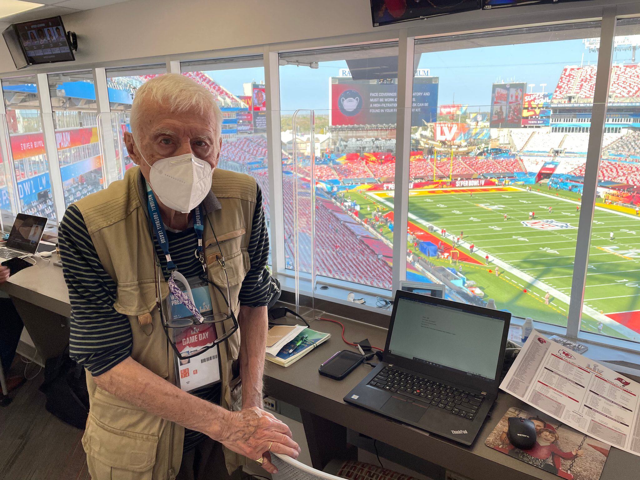 El deporte suele tener miles de historias, por lo que Jerry Greene, reportero de 93 años, siguió escribiendo la suya en el Súper Tazón LV.