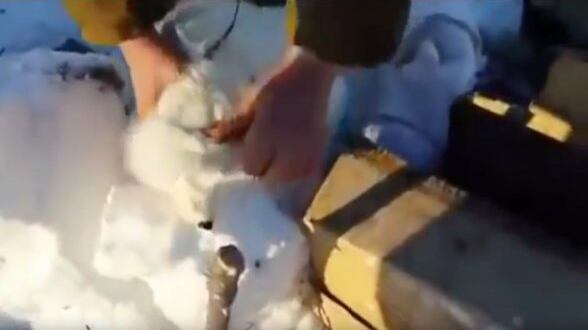 Unos cazadores en Siberia fueron engañados por un zorro polar aparentemente muerto. Los hombres habían capturado al animal y dejado en una caja cuando de pronto el pequeño salió corriendo escapando de sus captores.