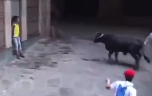 Una chica que participaba en un encierro recibió la cornada de un toro y en lugar de huir corriendo para evitar seguir siendo corneada se quedó congelada ante el animal. Video: YouTube LiveLeak.