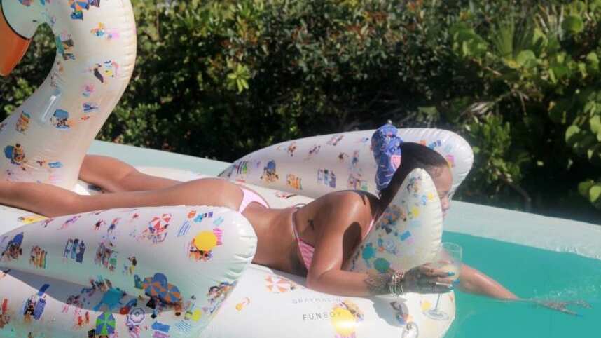 Sin embargo, en esta ocasión un nuevo video compartido por la cantante en SnapChat está llamando la atención, ya que se ve a la también empresaria jugar sobre un cisne inflable, del cual termina cayéndose.