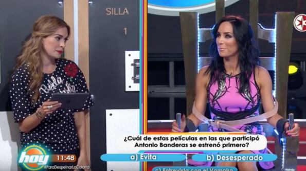 En la sección de la «silla eléctrica», Inés tenía que responder perfectamente las preguntas que le hacía Galilea Montijo para evitar los toques, y todo iba bien hasta que le preguntaron: «¿Cuál de las películas en las que participó Antonio Banderas se estrenó primero? a) «Evita», b) «Desperado» o c) «Entrevista con el vampiro». Al no saber la respuesta, Gómez-Mont se rindió y entonces fue el momento de la venganza de Galilea, pero antes de recibir la descarga eléctrica, Galilea Montijo la distrajo con otra pregunta, y así, sin avisarle, jaló la palanca para darle toques.