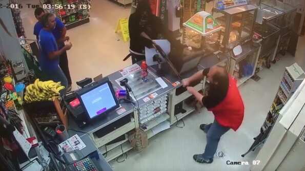 Un empleado de una tienda de Maryland ha sido aclamado como un héroe por desarmar a un ladrón armado con una escopeta. Impactante video del incidente ha salido a la luz y muestra el momento peligroso que rápidamente se convirtió en viral. Video: YouTube FrederickNewsPost.